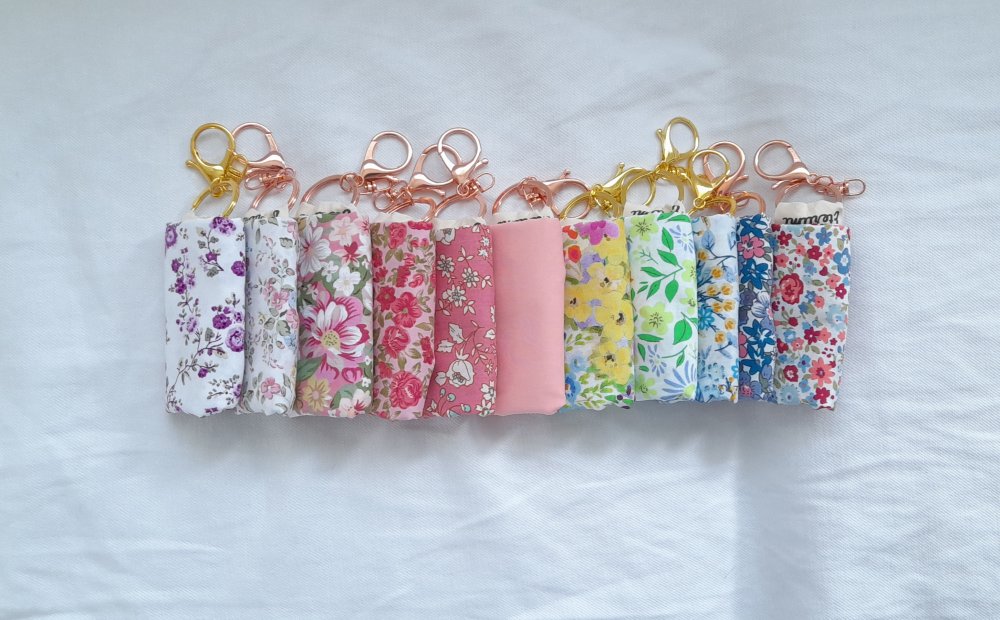 Carré de poche en coton, plié et accroché en porte clé, bijou de sac et/ou accessoire de mode