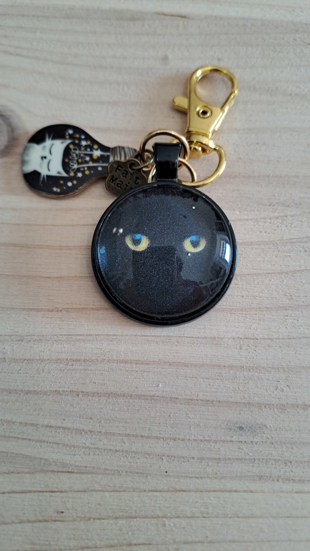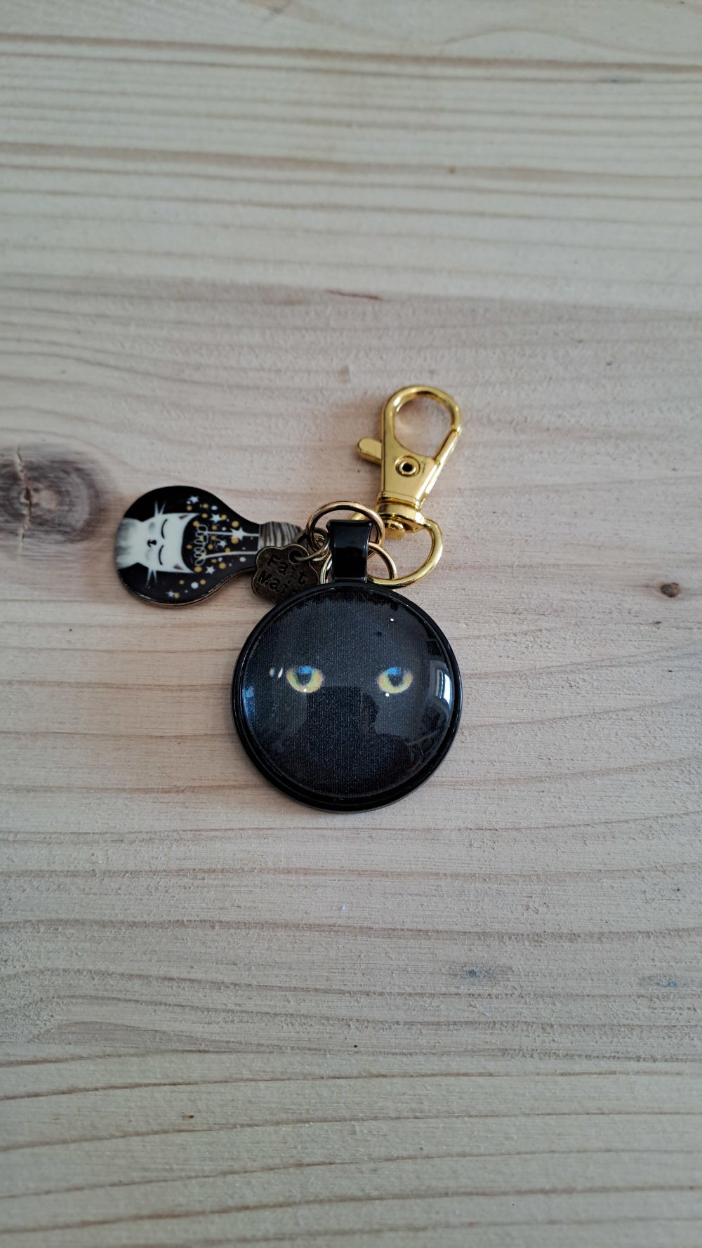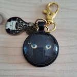 Article artisanal et unique motif chat noir aux yeux dorés