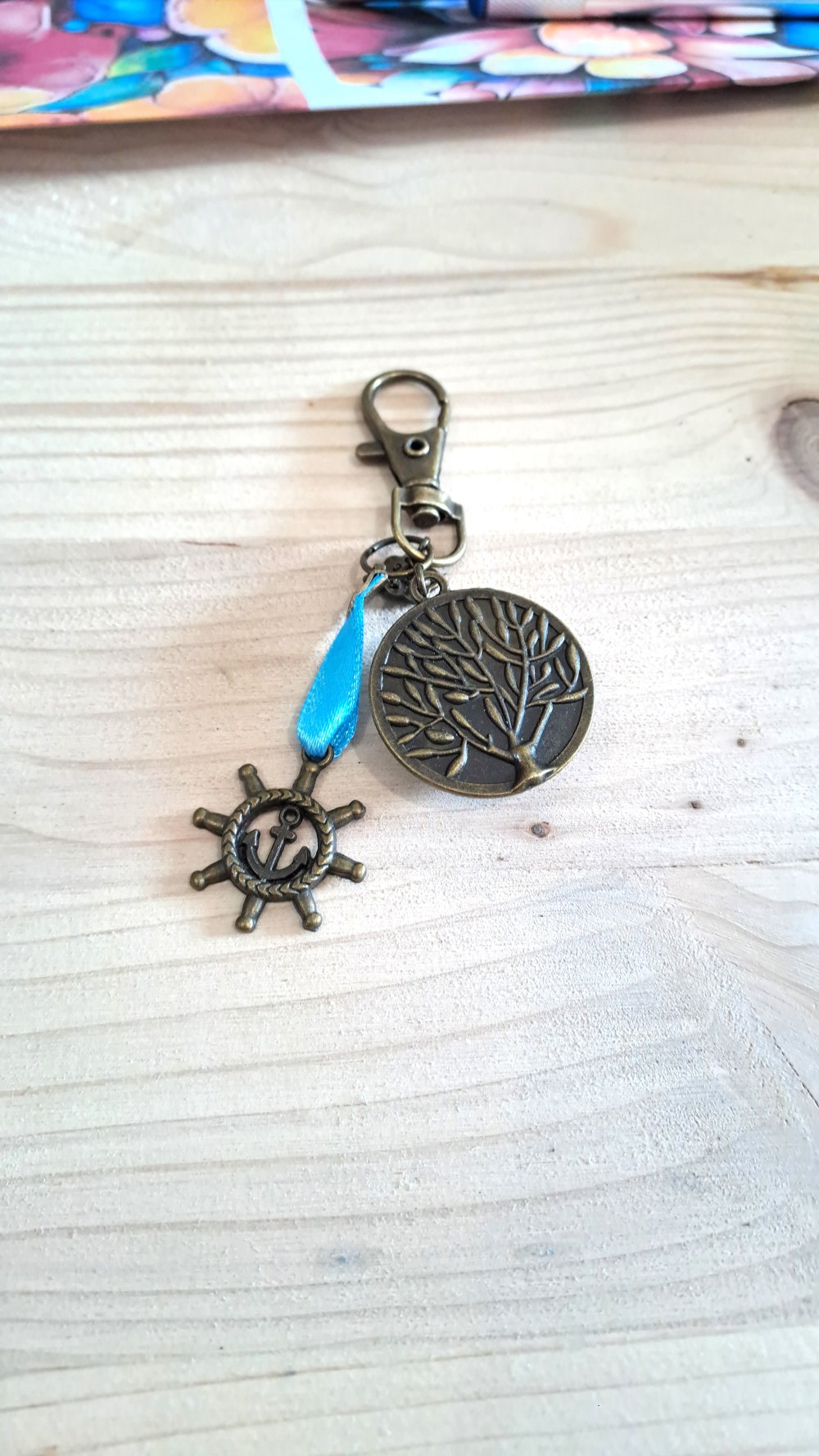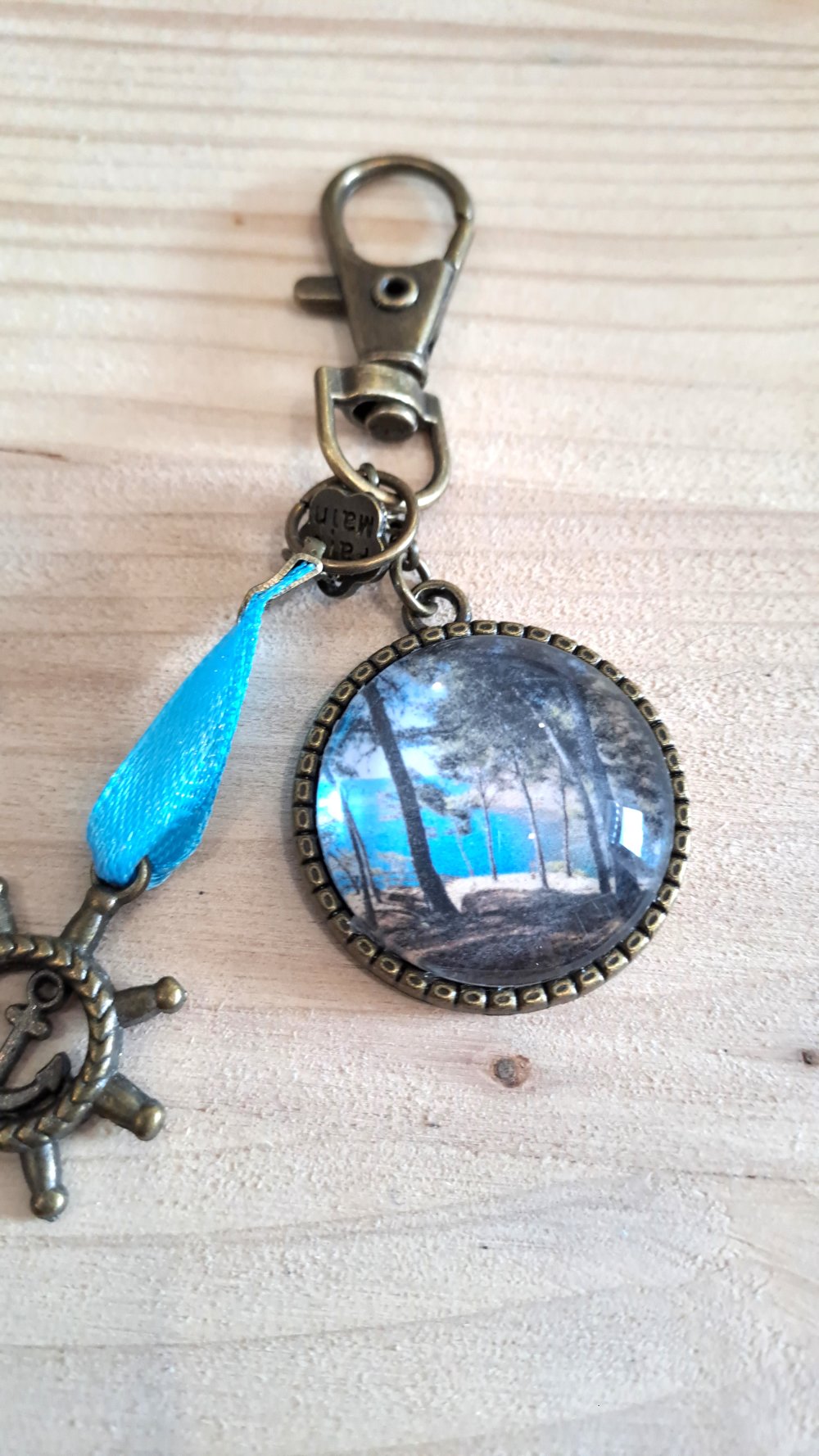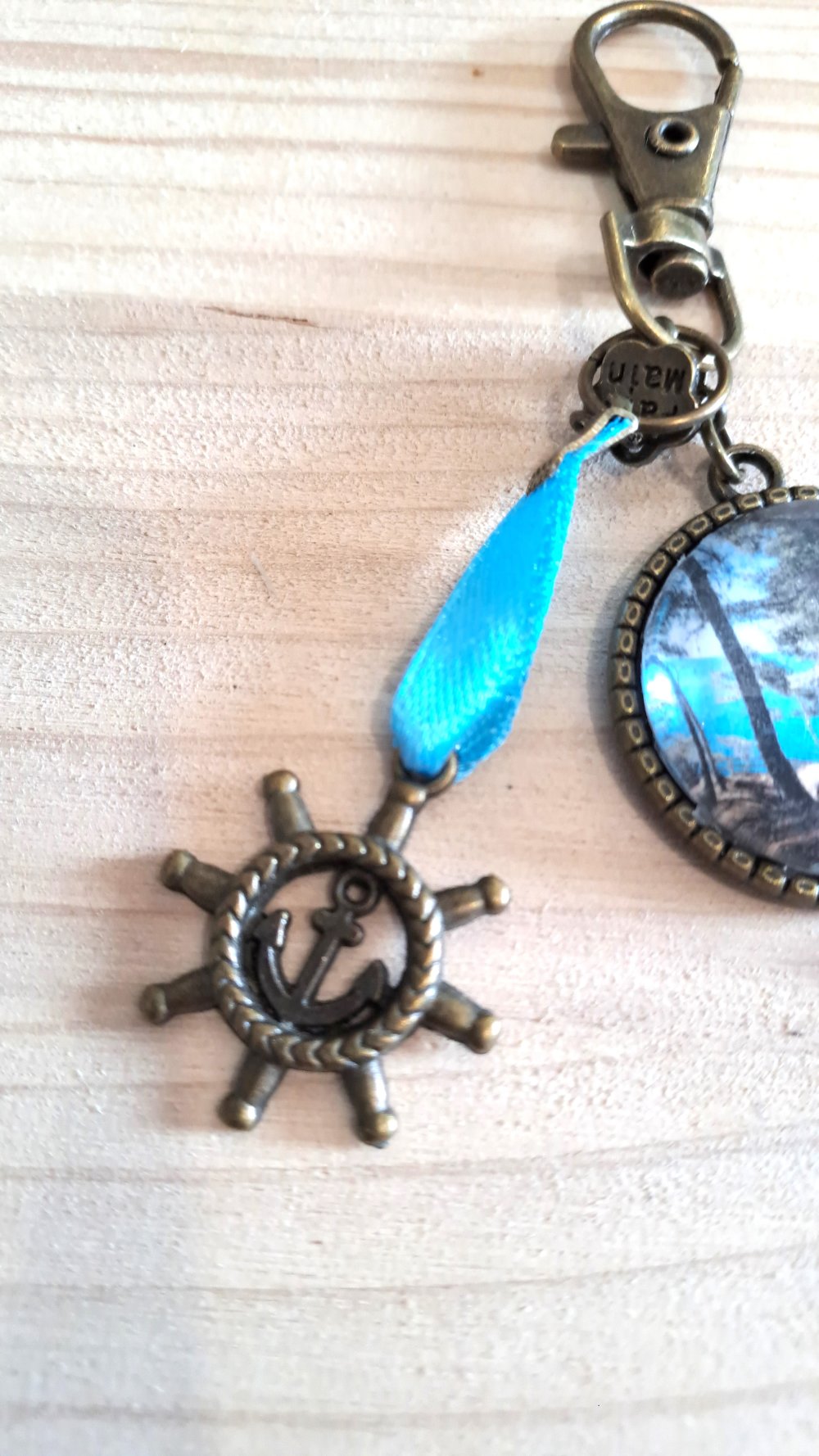 Porte clef Évasion au Bord de Mer palmierRoue de bateau métal bronze