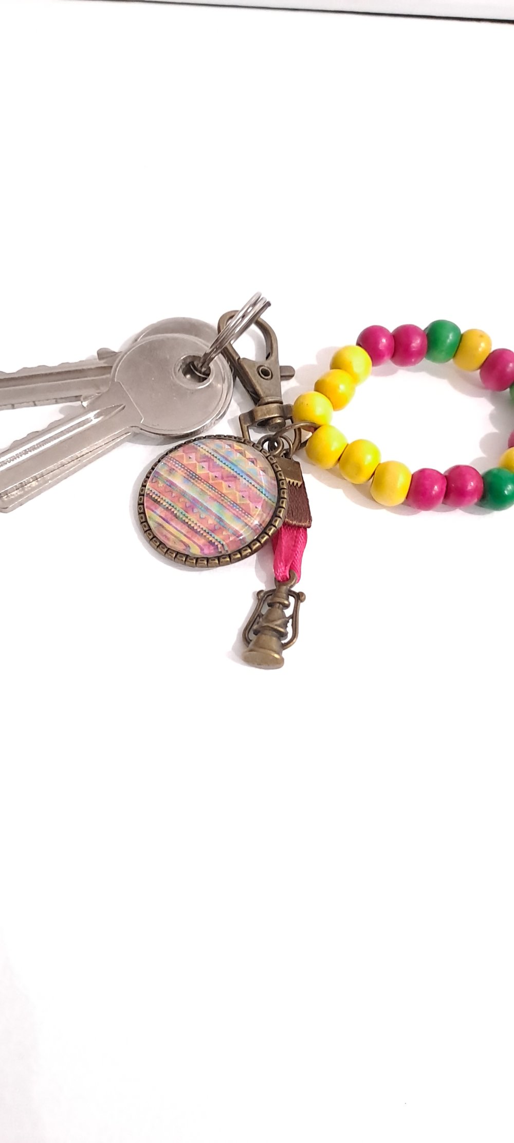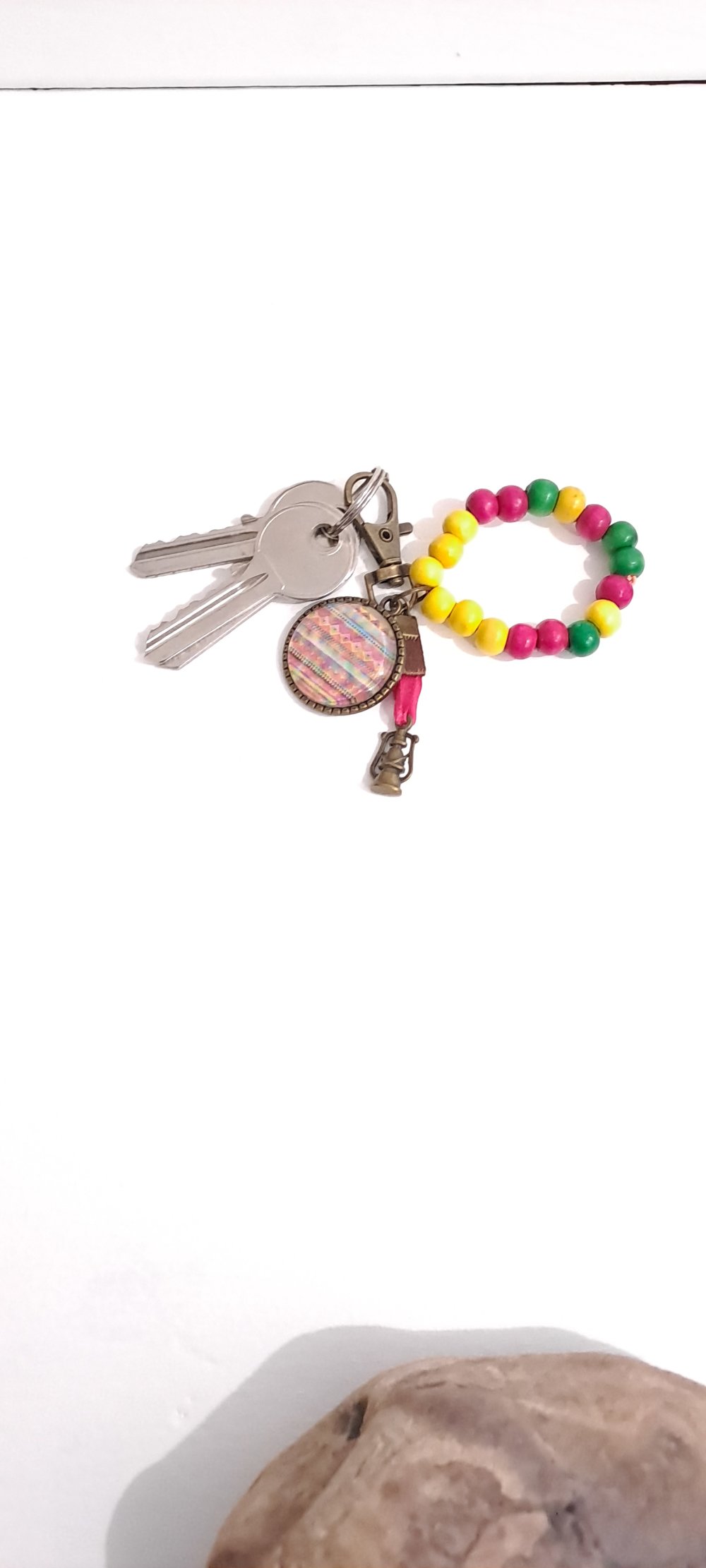 Porte clé métal couleur bronze cabochon verre ,bijoux de sac, accessoire clé