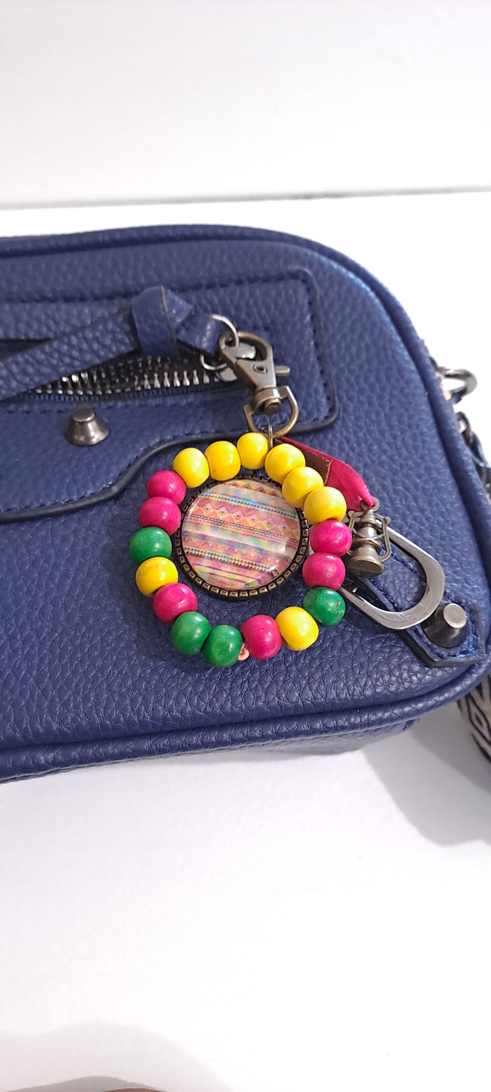 Porte clef indou multicolores ou bijoux de sac multicolore motif tissus indien
