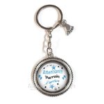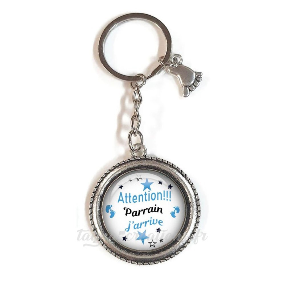 Cabochon en résine 25 mm avec l'inscription "Attention parrain, j’arrive !!!"