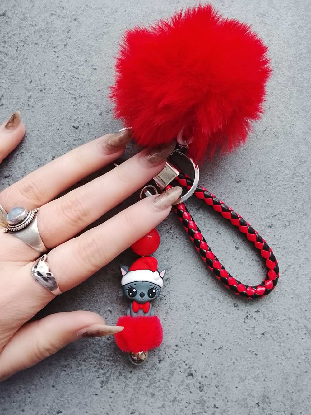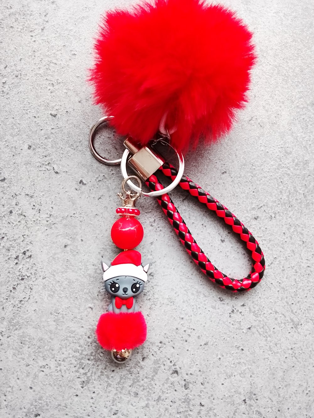 Porte clés chat Noël rouge