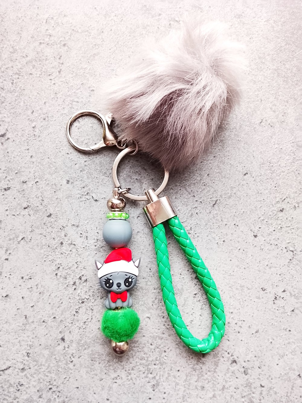 Porte clés chat Noël vert