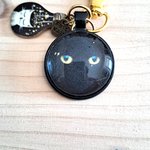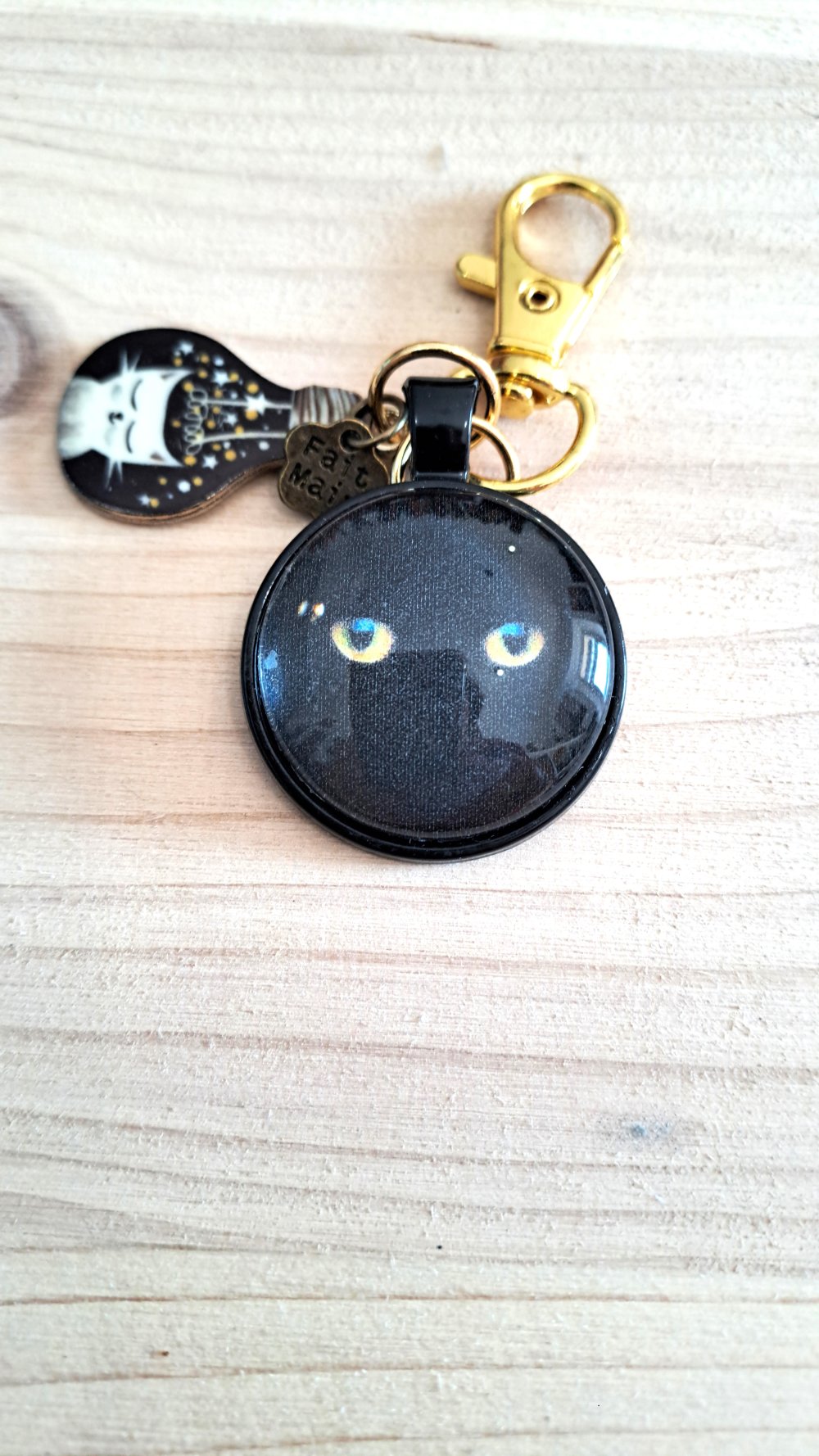 Article artisanal et unique motif chat noir aux yeux dorés