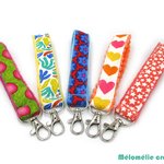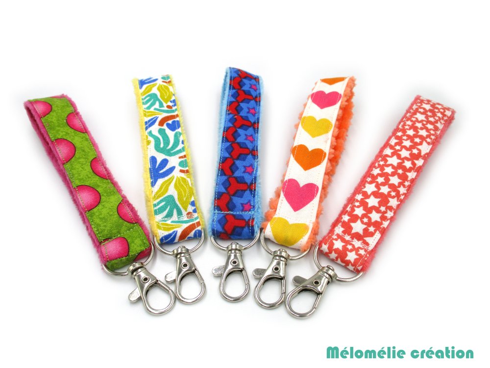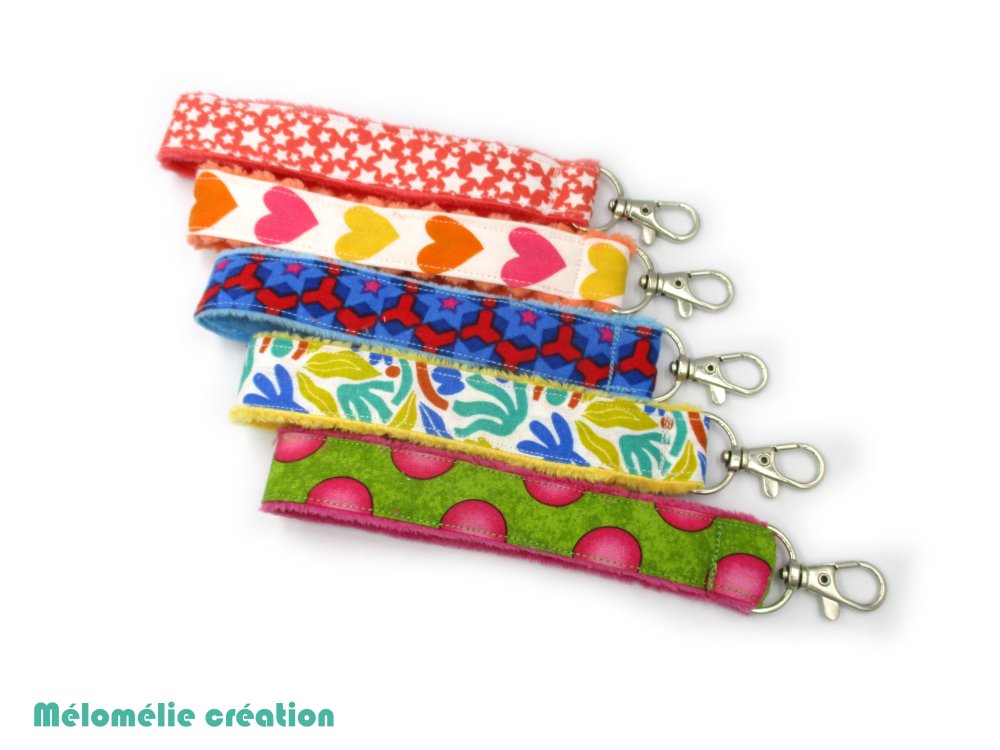 Porte-clés dragonne, porte-clés lanière, multicolore, coton et minky, tout doux, idée cadeau, mousqueton
