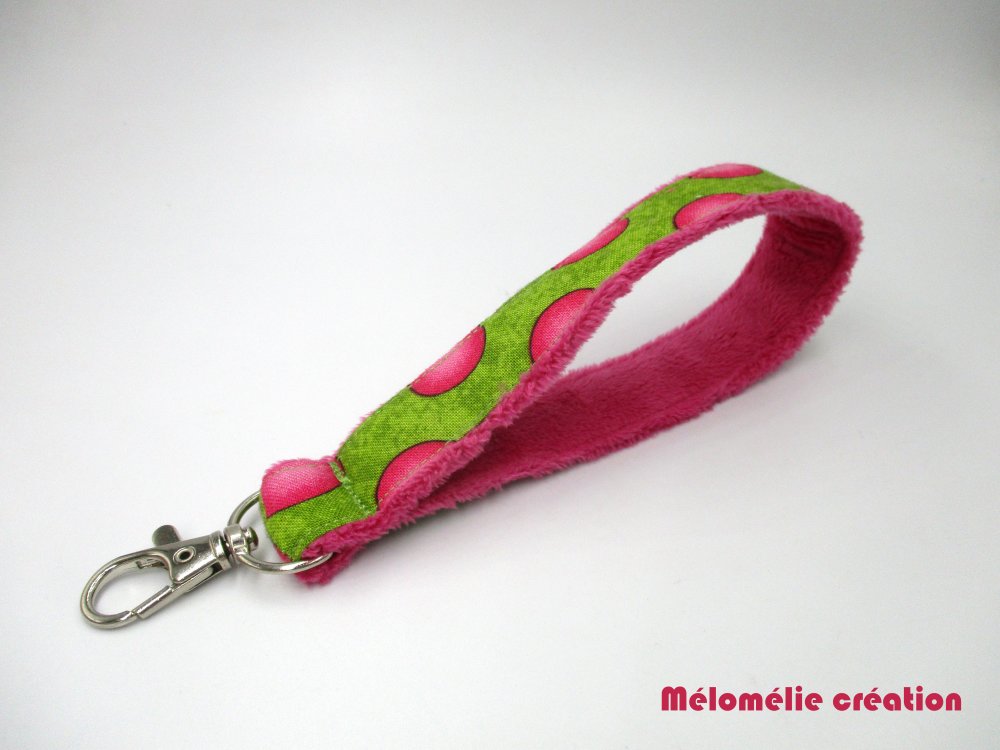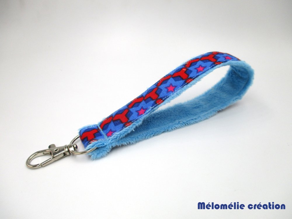 Idée cadeau, article fait-main, article original et unique, lanière à mettre au poignet, très agréable au toucher avec son intérieur en minky tout doux, pour accrocher ses clés, un badge, une carte etc...