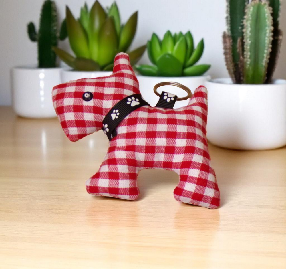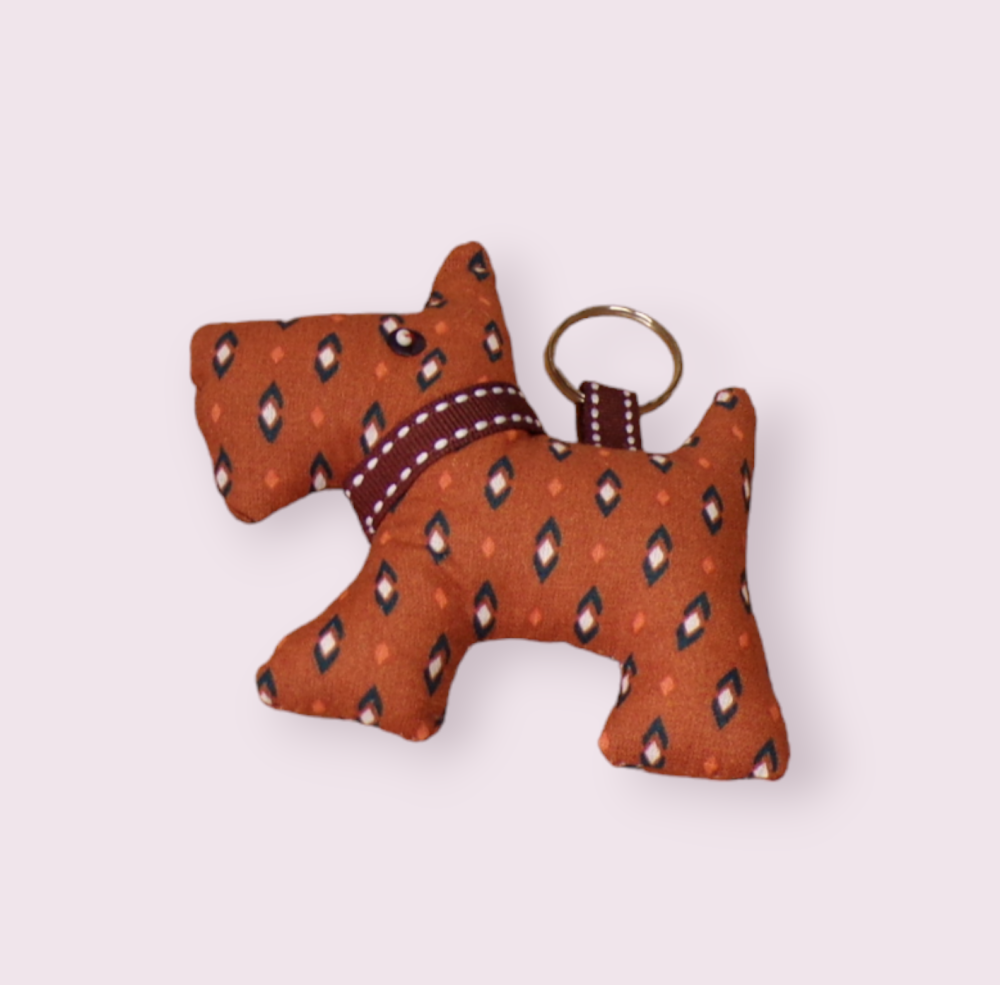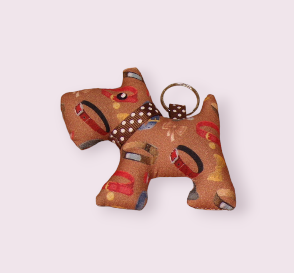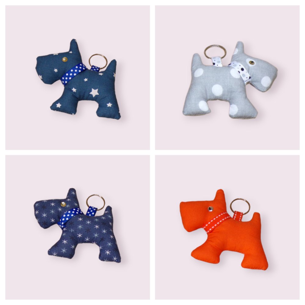 Voici de joli porte clés en forme de chien réalisé dans du tissu en coton.