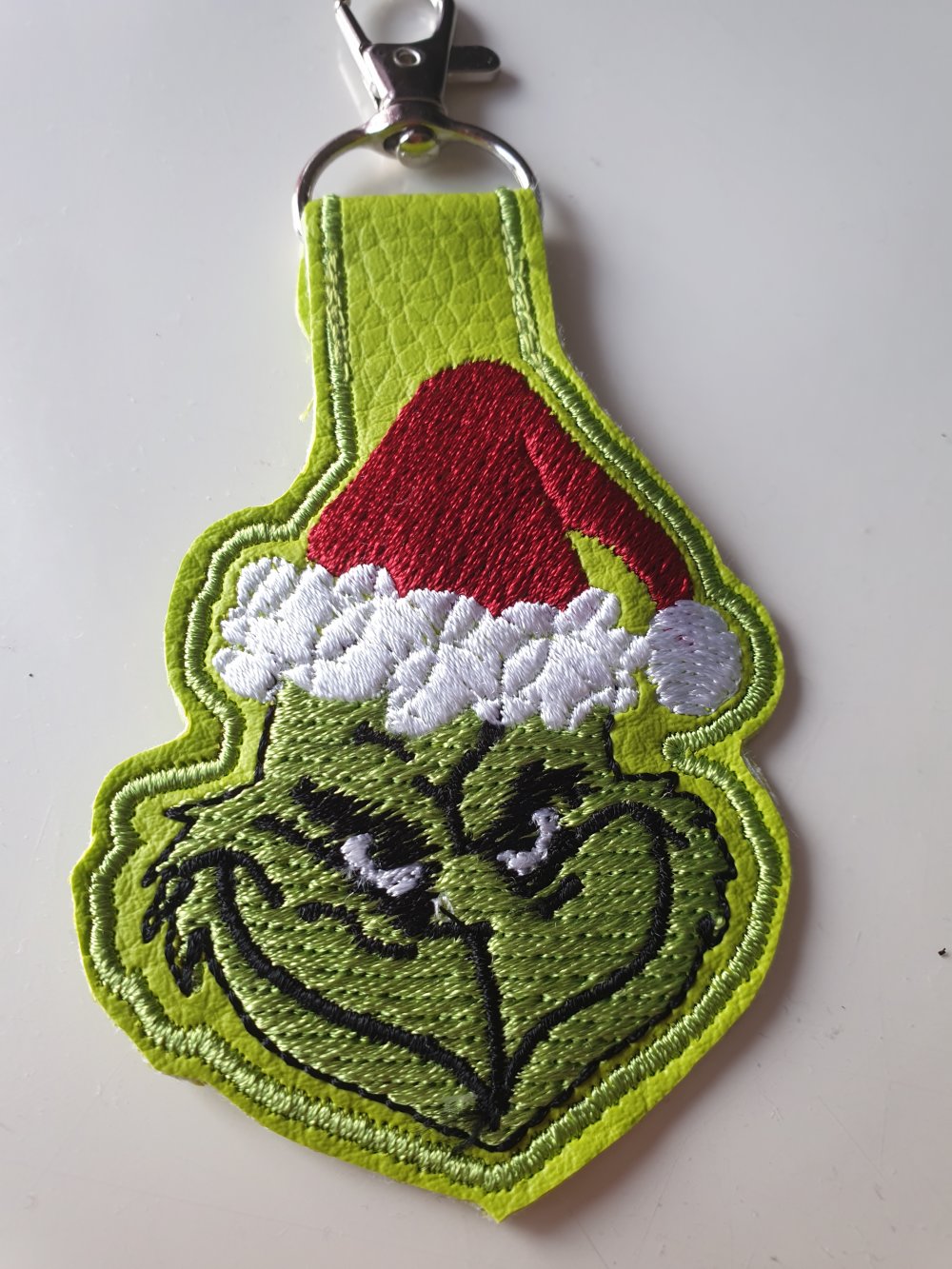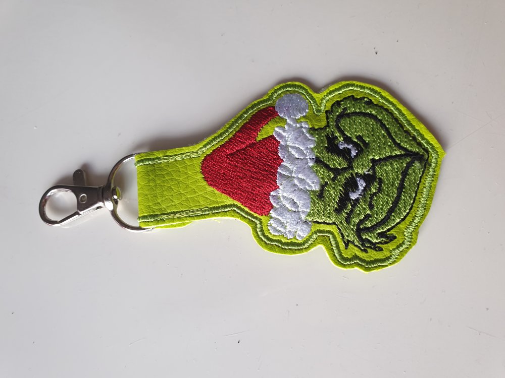Porte-clés en simili cuir brodé – Créature malicieuse qui n'aime pas Noël