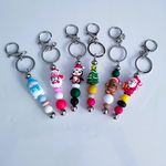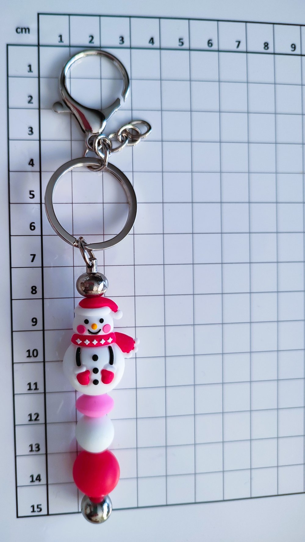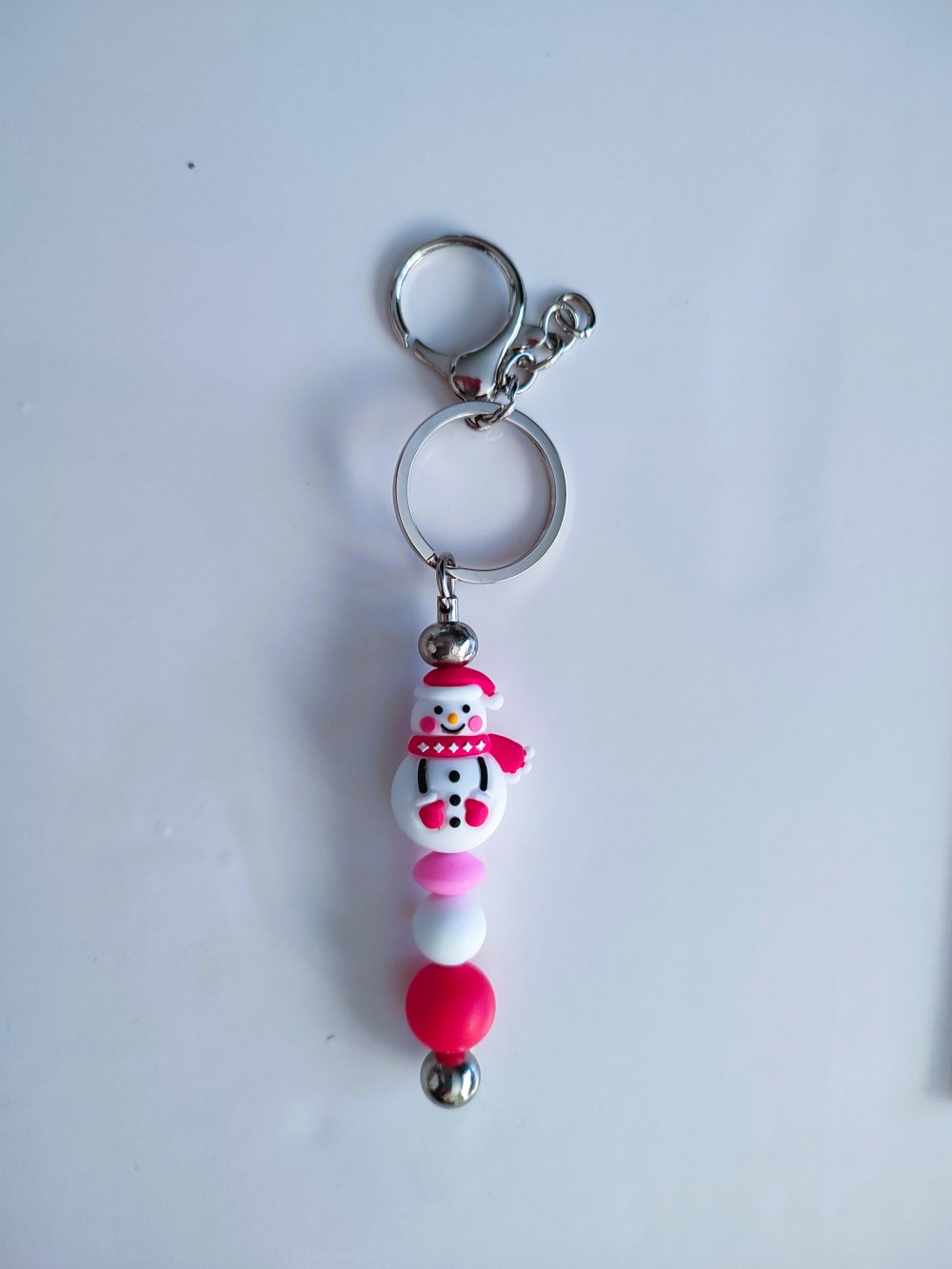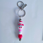 Porte clés bonhomme de neige et perles en silicone rose blanche et rouge