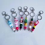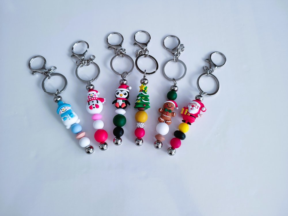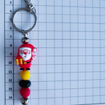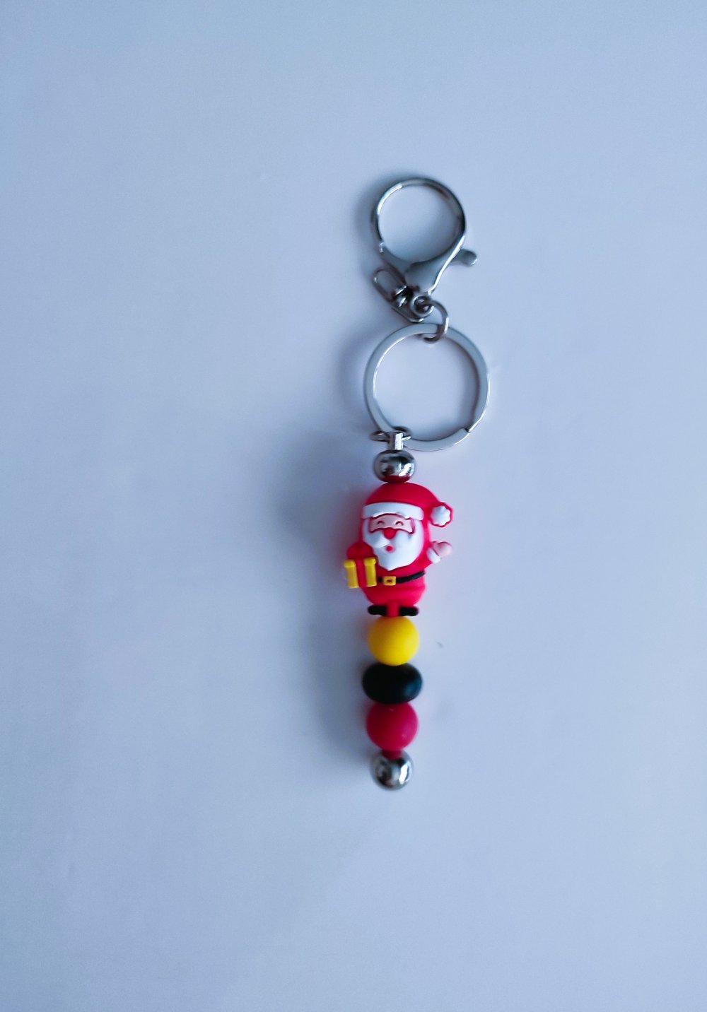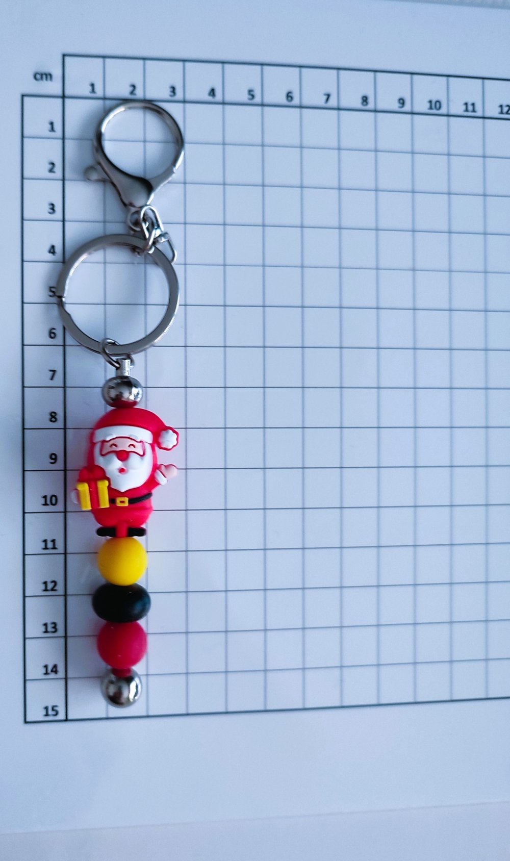Porte clés père noël et perles en silicone jaune noir et rouge