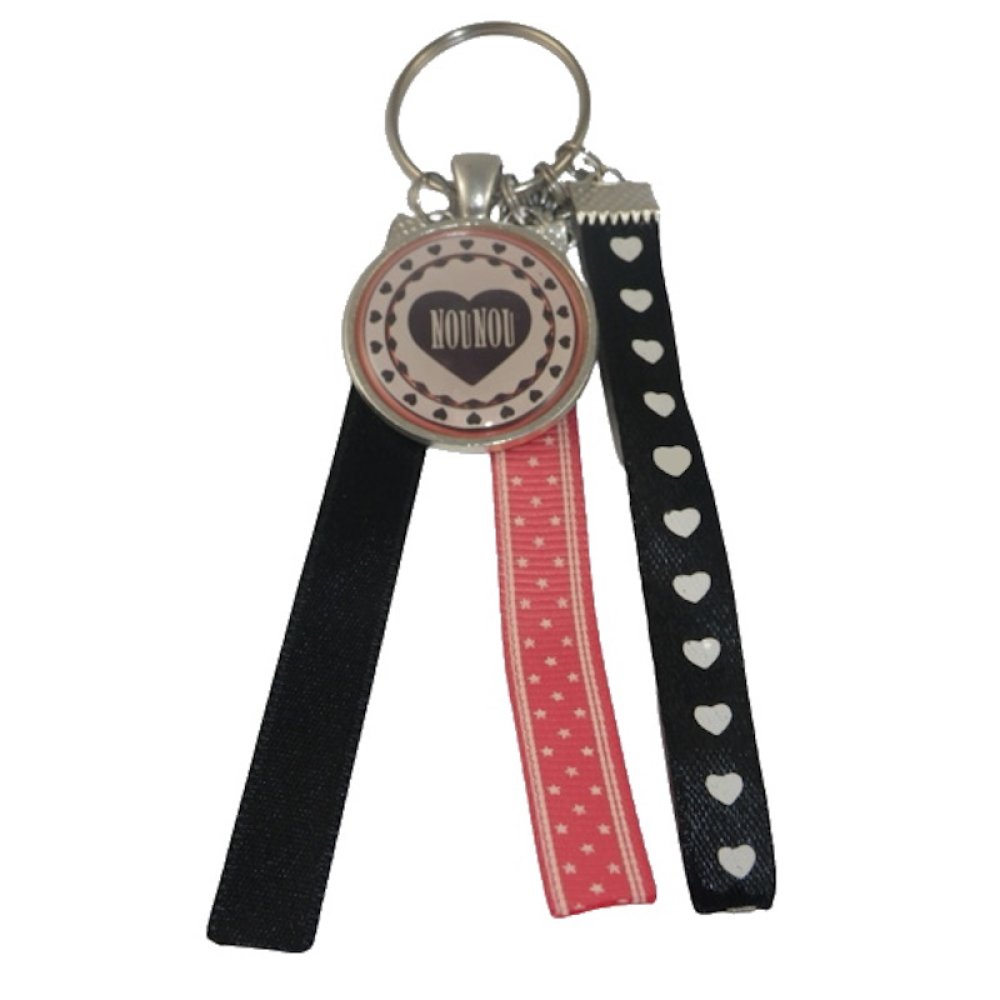Support cabochon en métal argenté et cabochon avec inscription "Nounou"