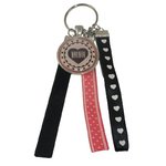 Un ruban noir, un ruban noir et cœurs blancs et un ruban rose à pois blancs
