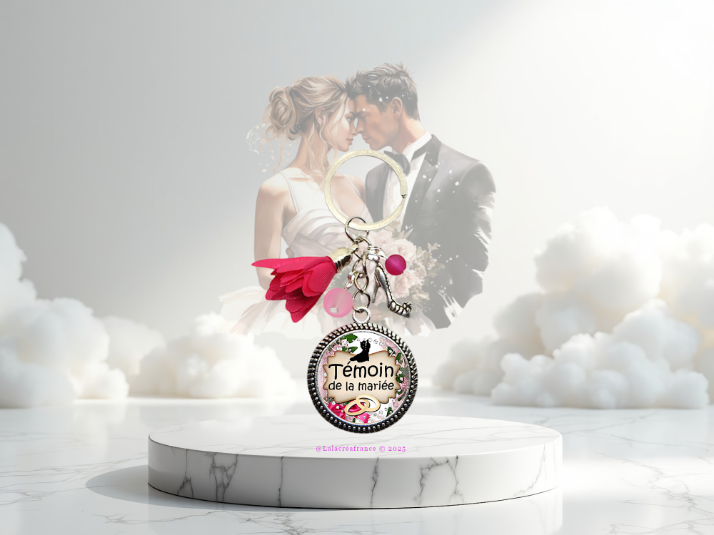 Ce porte-clés "Témoin de la mariée" est le cadeau parfait pour remercier ton témoin de mariage d’avoir partagé ce moment unique à tes côtés.