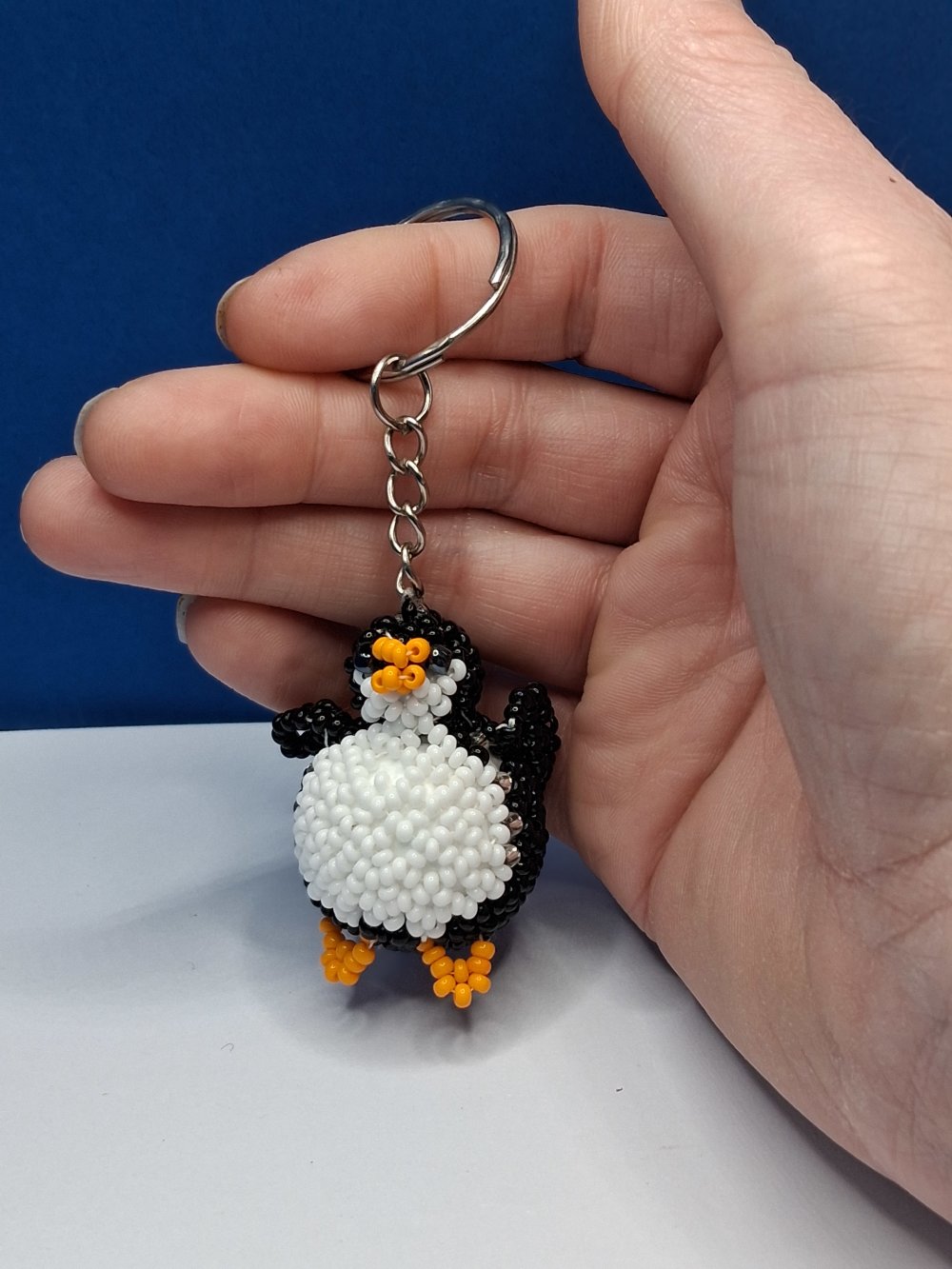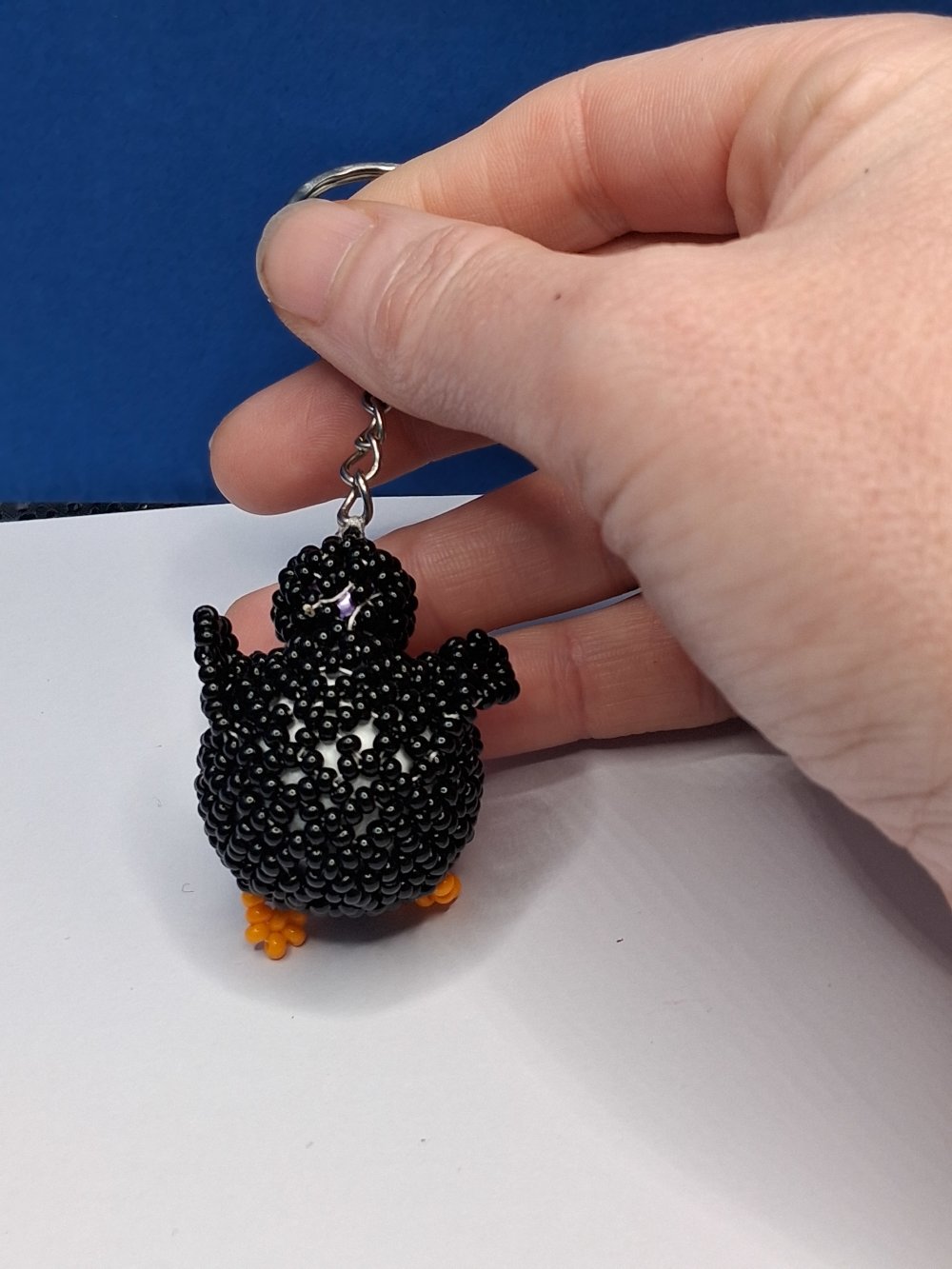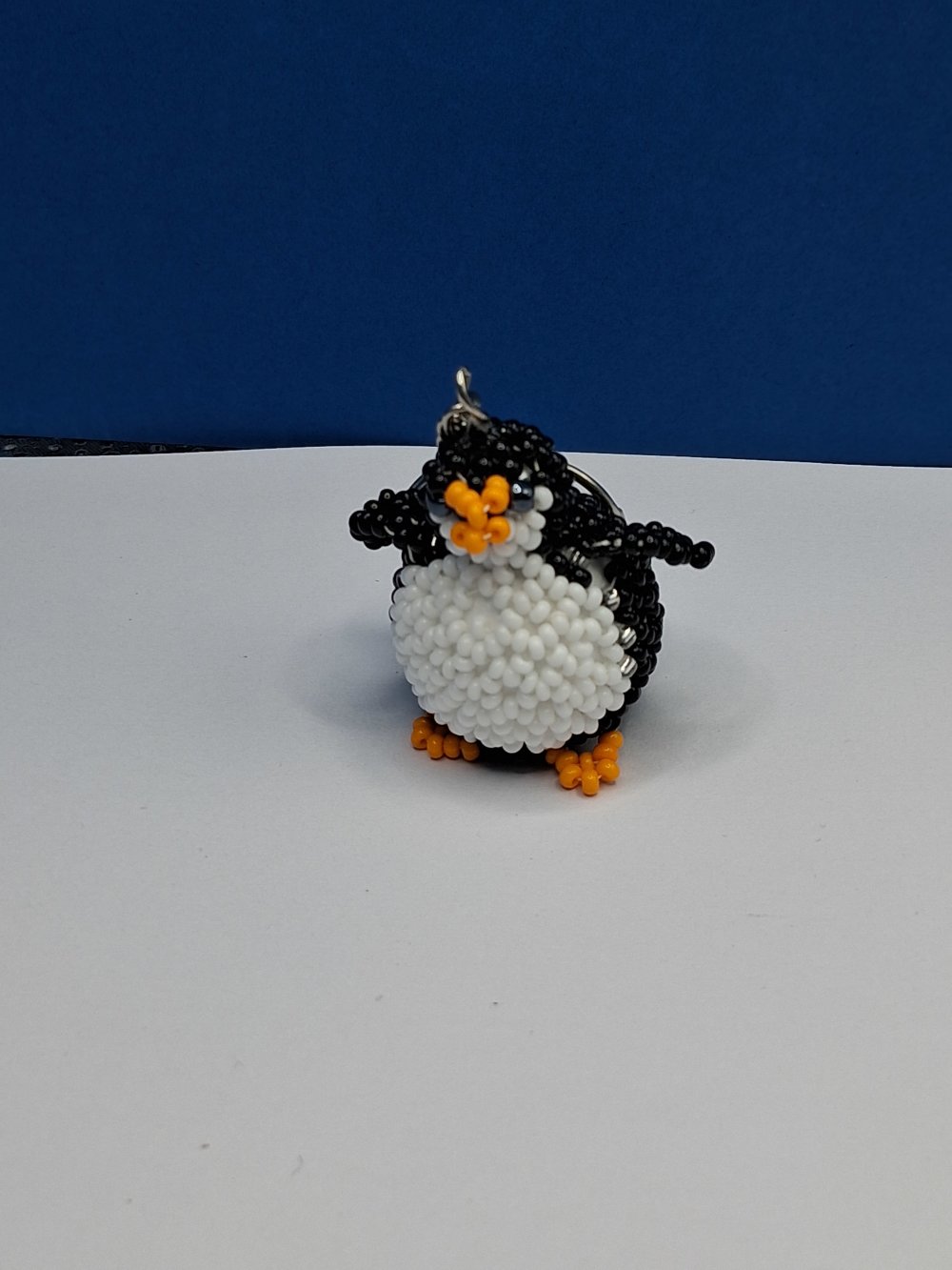 Porte-clés pingouin noir réalisé avec l'aide de mes perles.