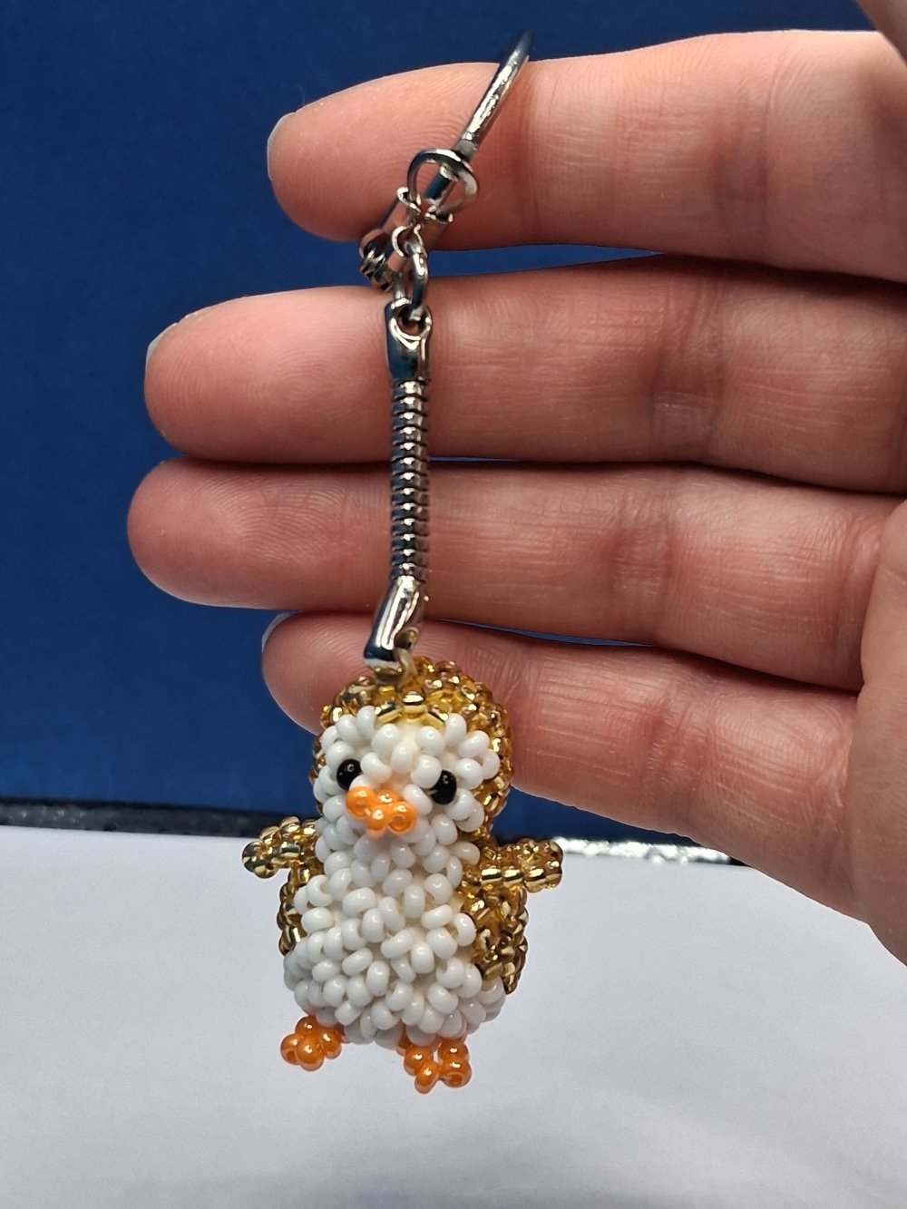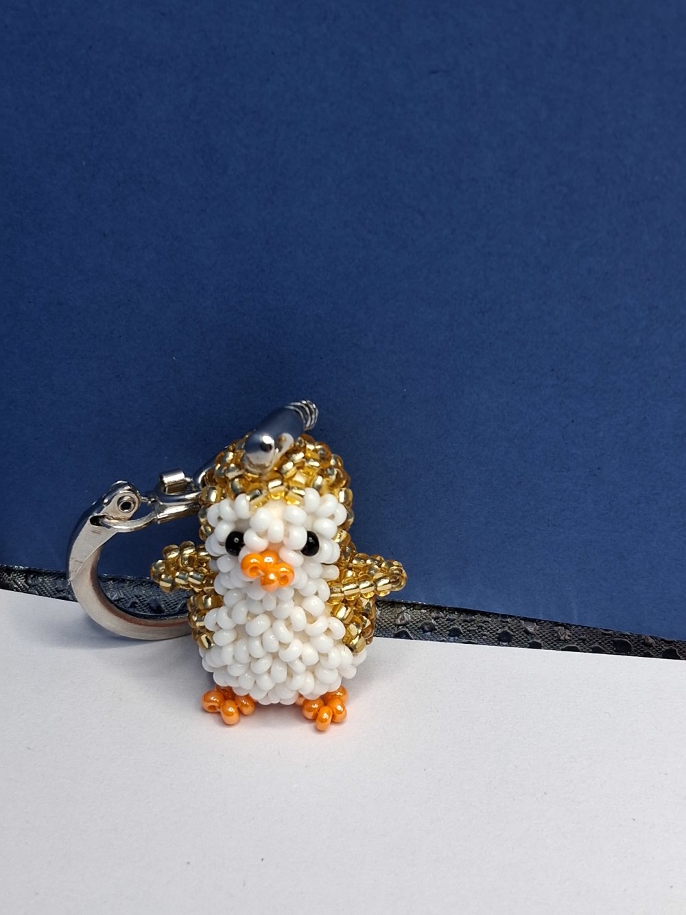 Porte-clés pingouin or réalisé à l'aide de mes perles