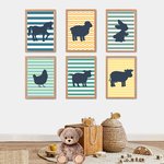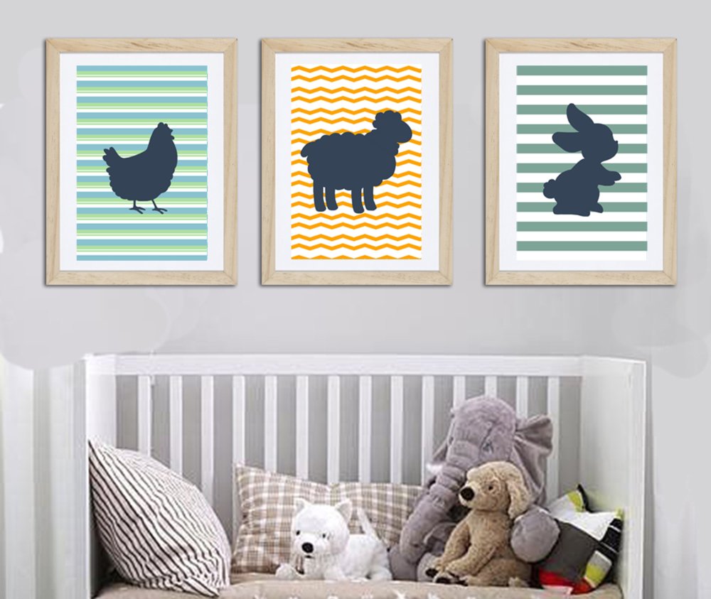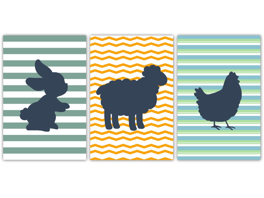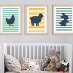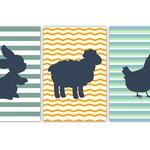 Lot de 3 affiches pour la décoration d'une chambre d'enfant avec les animaux de la ferme; poule, mouton, lapin