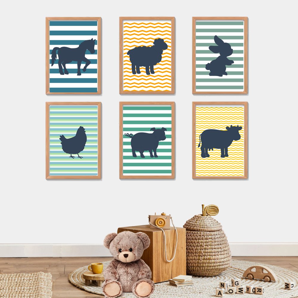 3 posters sur les animaux de la fermepour chambre d'enfant