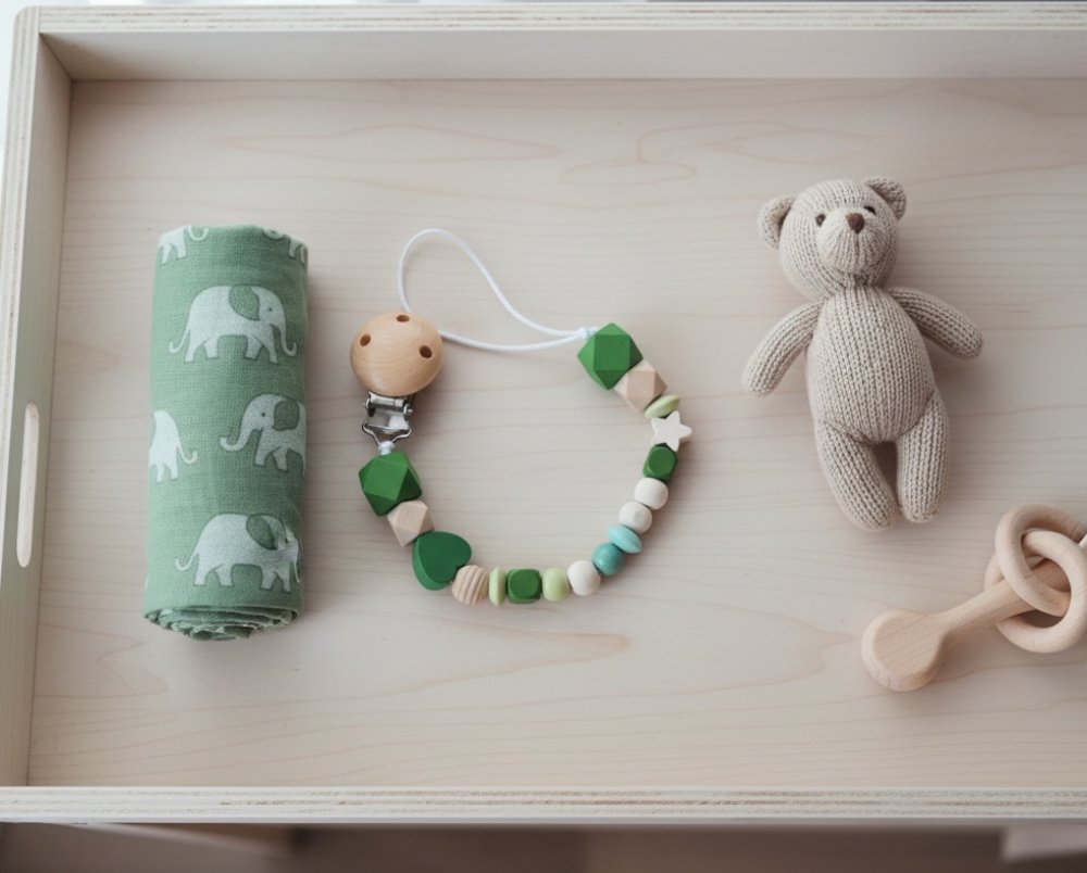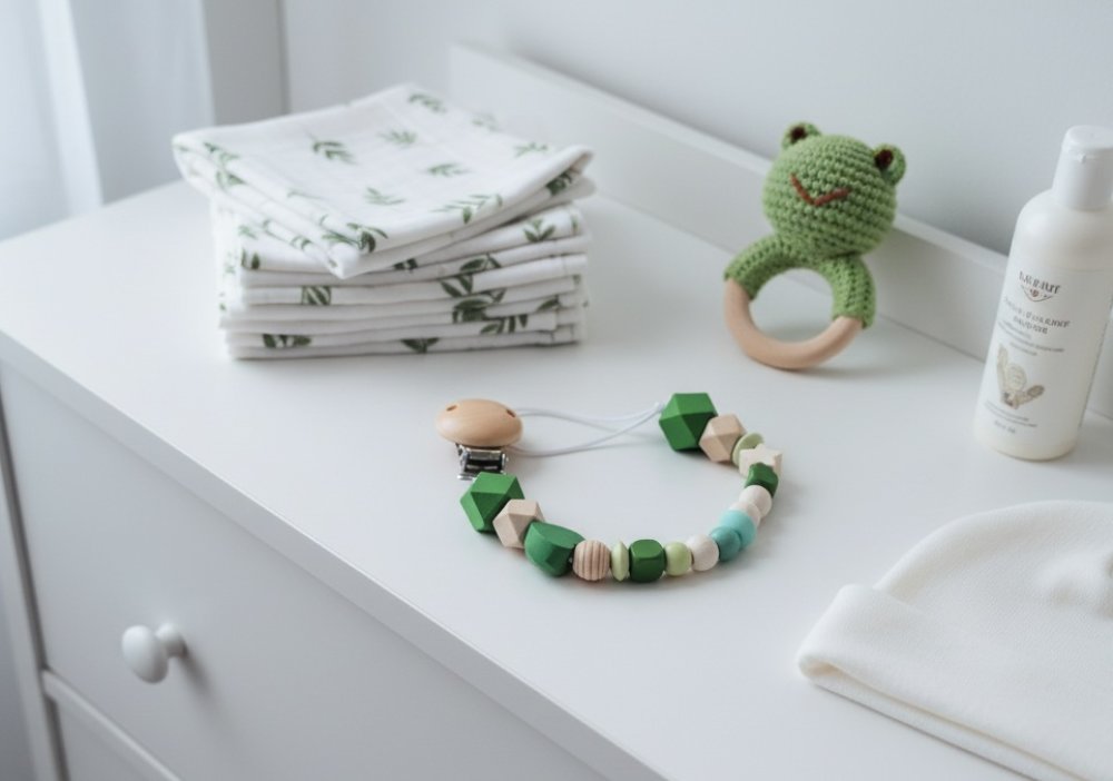 Pour éviter tout risque de strangulation, attachez plutôt la pince aux vêtement du bébé !