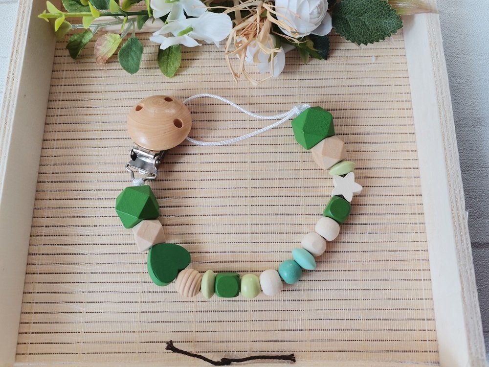 Attache tétine perles bois