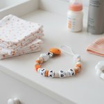 Pour éviter tout risque de strangulation, attachez plutôt la pince aux vêtement du bébé !