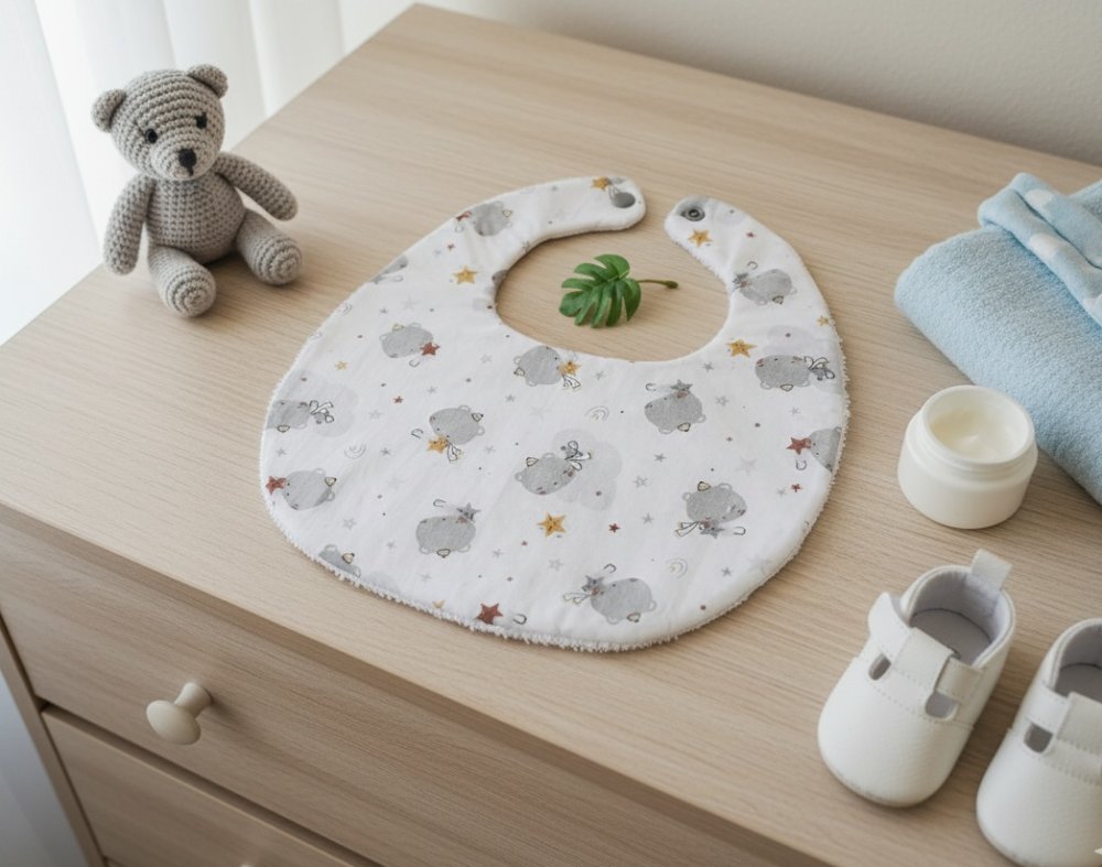 Petit bavoir idéal pour les premiers repas de bébé de 0 à 12 mois.