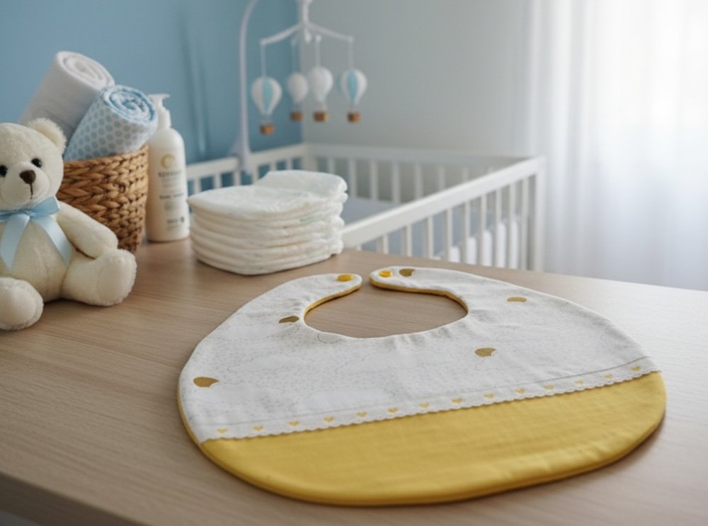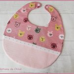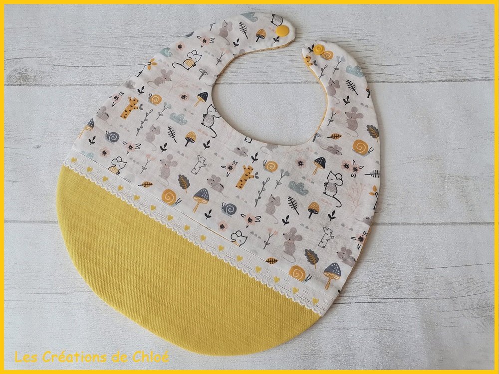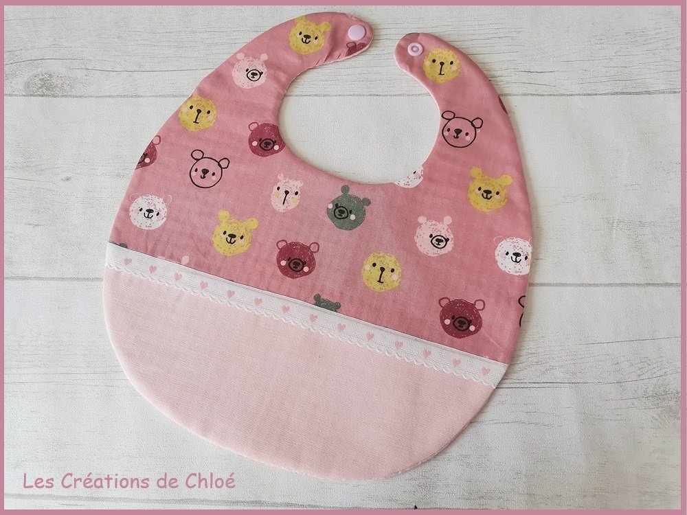 Ce joli petit bavoir se ferme par un bouton pression en résine de couleur