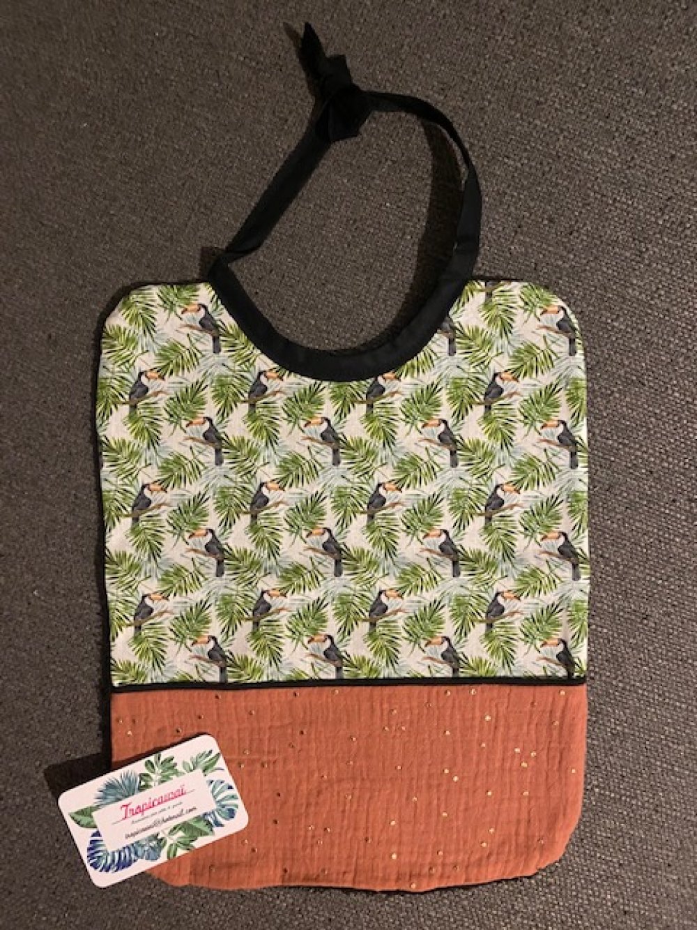 Bavoir chic, en double gaze, coton imprimé,doublé d'un tissu éponge qui absorbera les bavouilles de bébé.