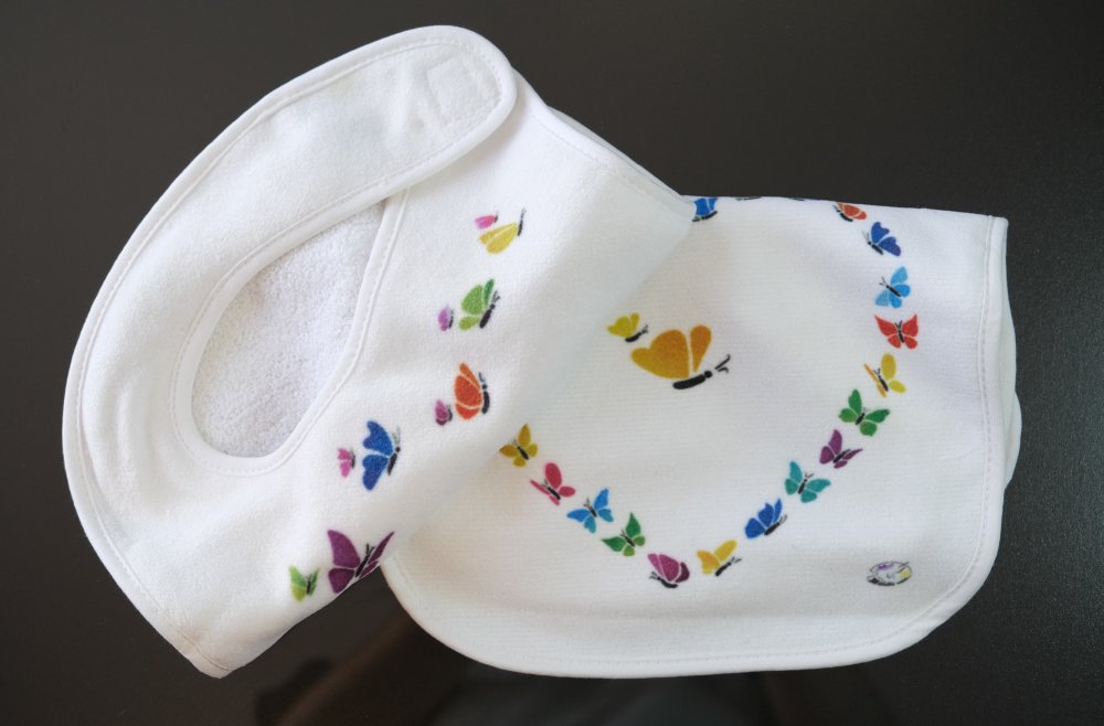 Grands bavoirs pour bébé dès 3 mois - 2 motifs papillons multicolores