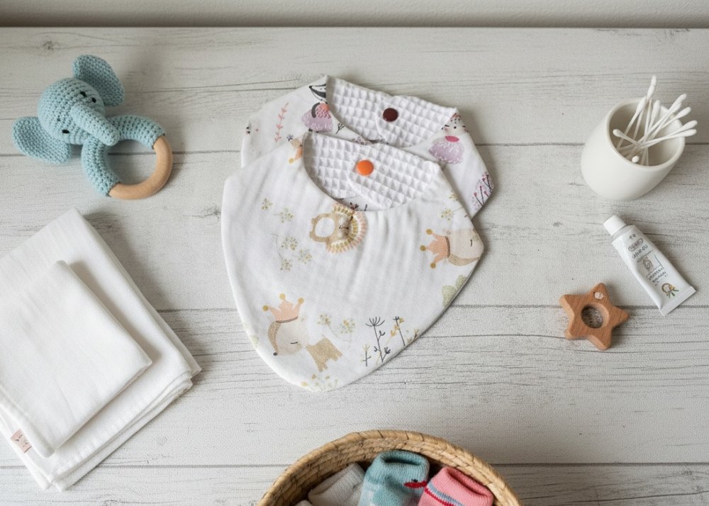 Lot de 2 jolis petits bavoirs idéal pour les premiers repas de bébé