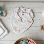 Réalisé avec du tissu coton certifié Oeko-Tex de couleur blanche imprimé animaux et doublé avec un tissu nid d'abeilles de couleur blanche