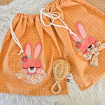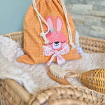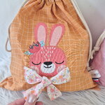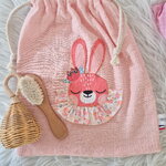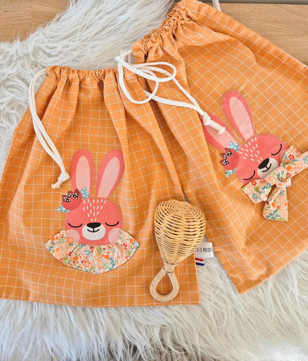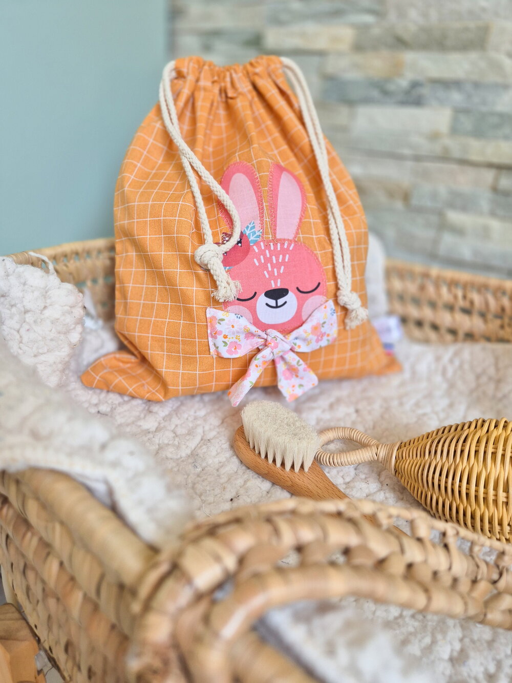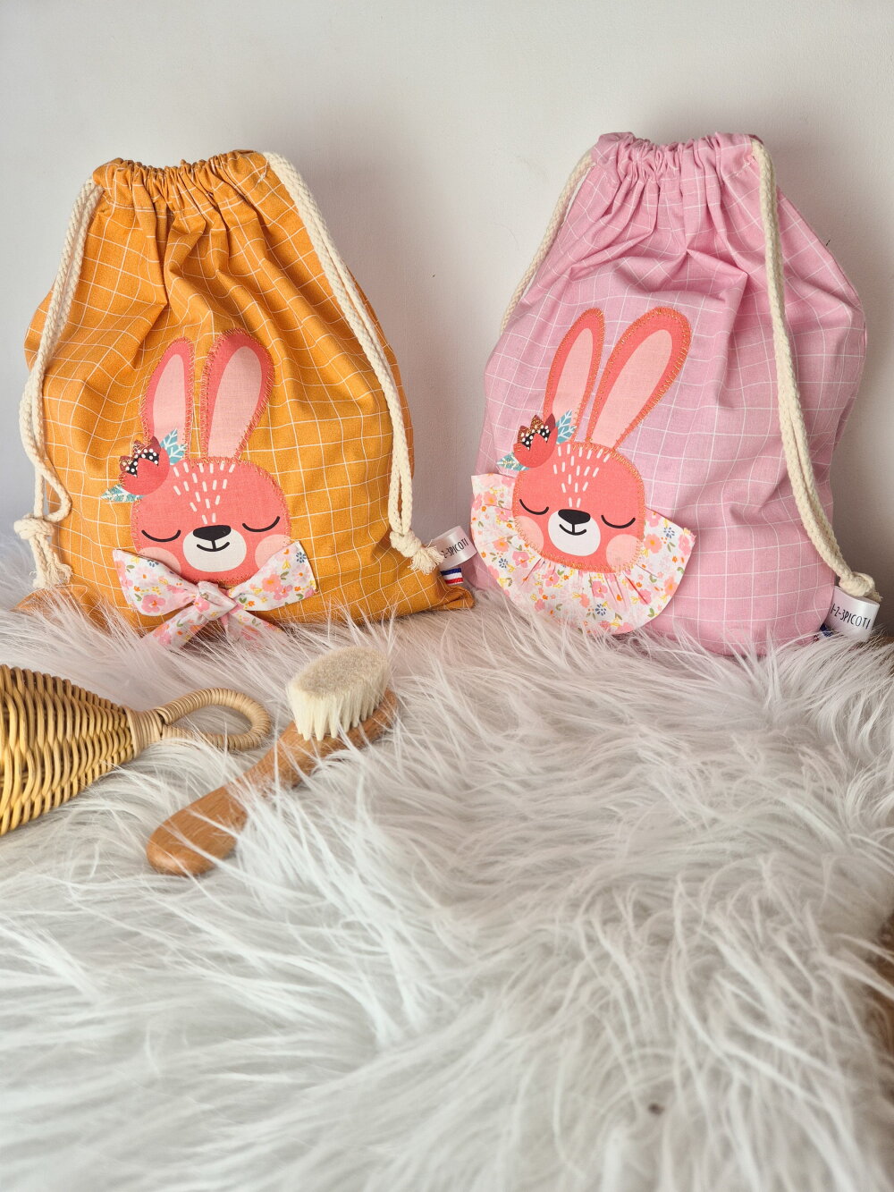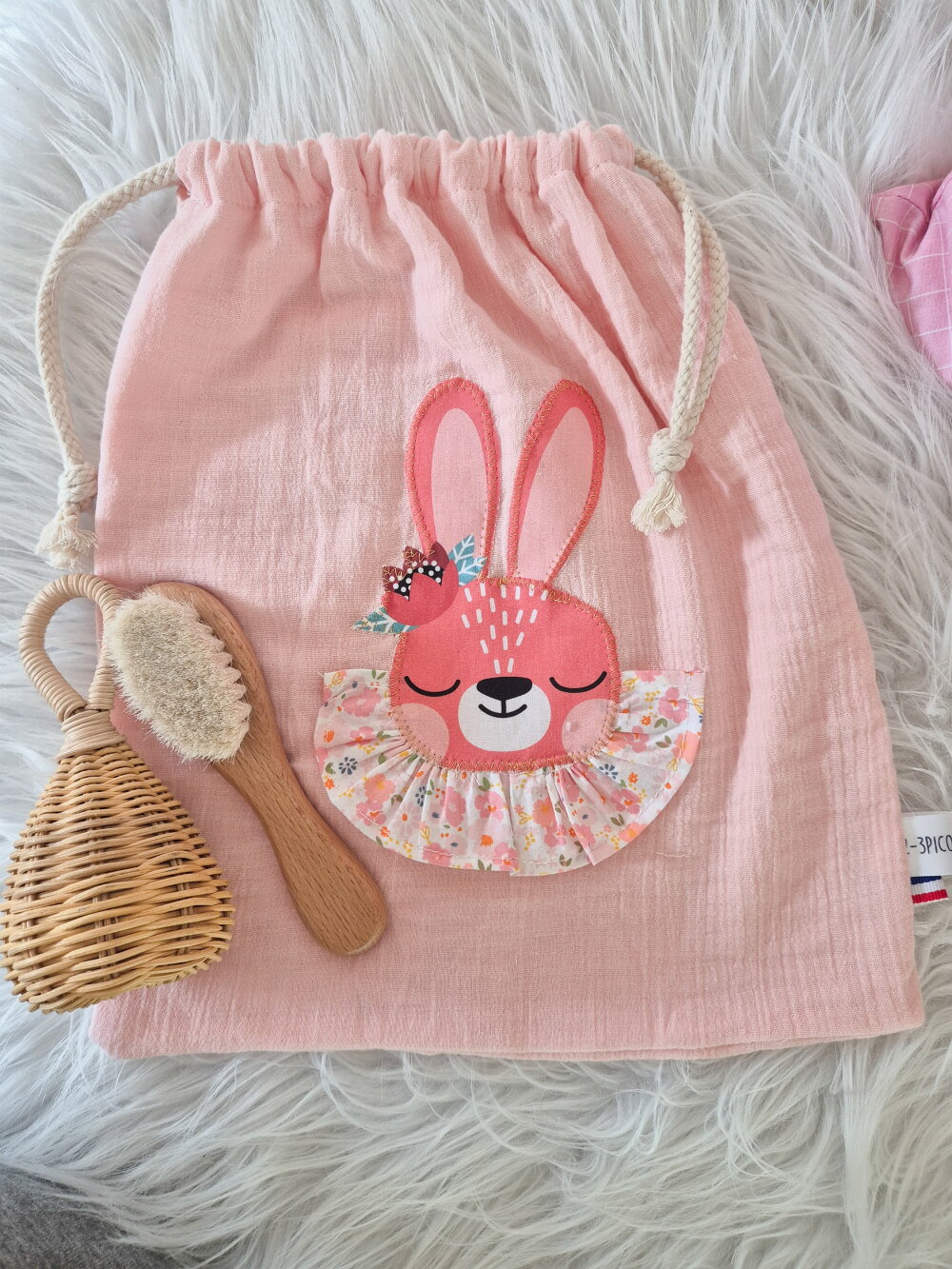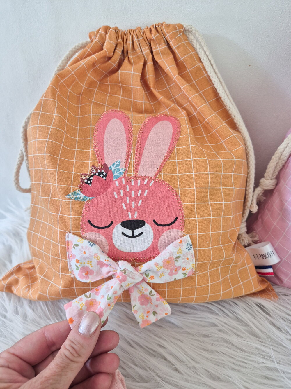 Pochon en coton avec un lapin sur le devant . Modèle déposé , modèle unique ,modèle original.