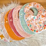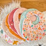 Un semainier de bavoirs orange , un joli bavoir par jour avec de motifs différents, des matières différentes.