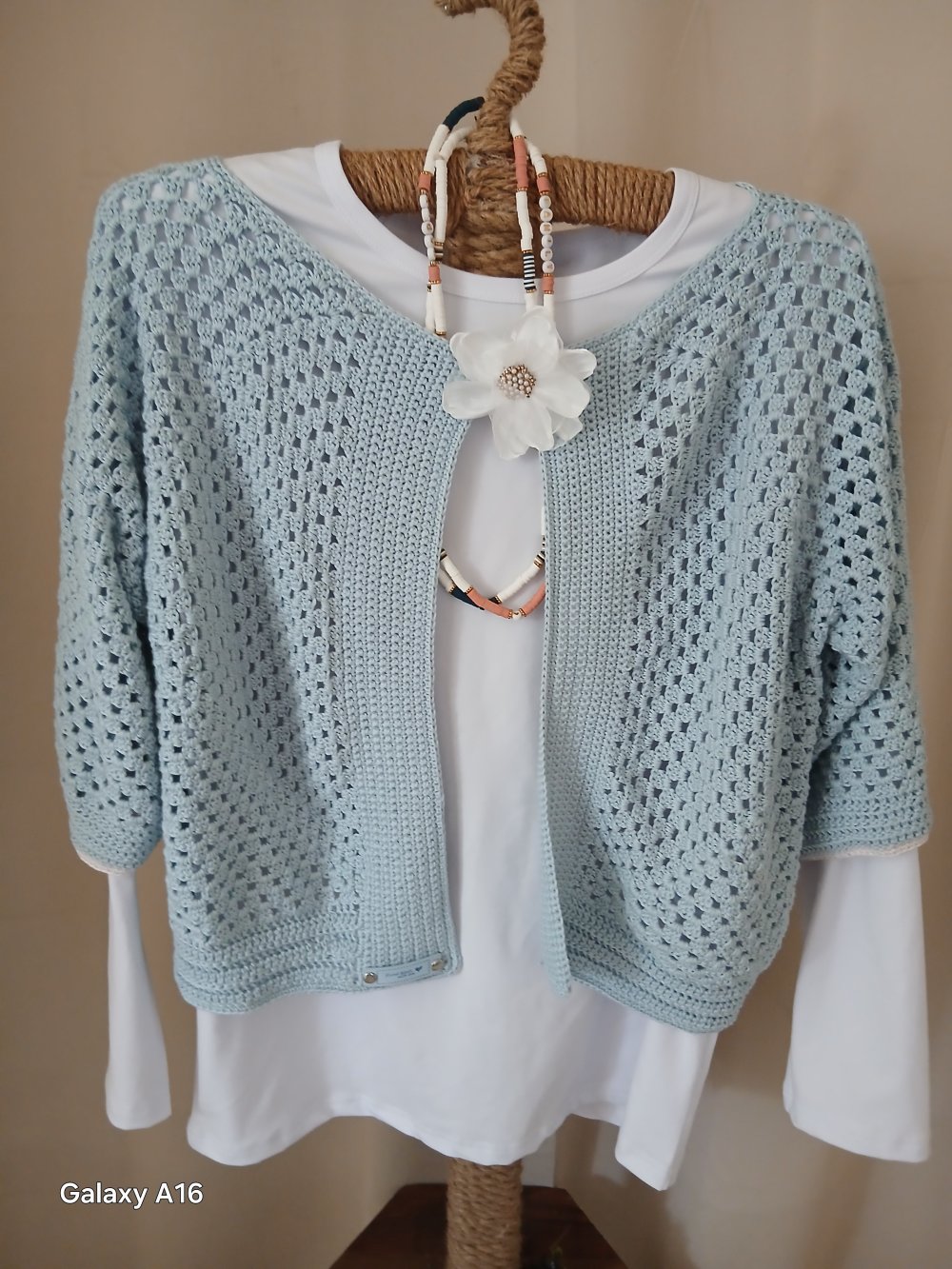 Gilet au crochet, cache bouton amovible que vous pouvez adapter sur tous vos chemisiers.