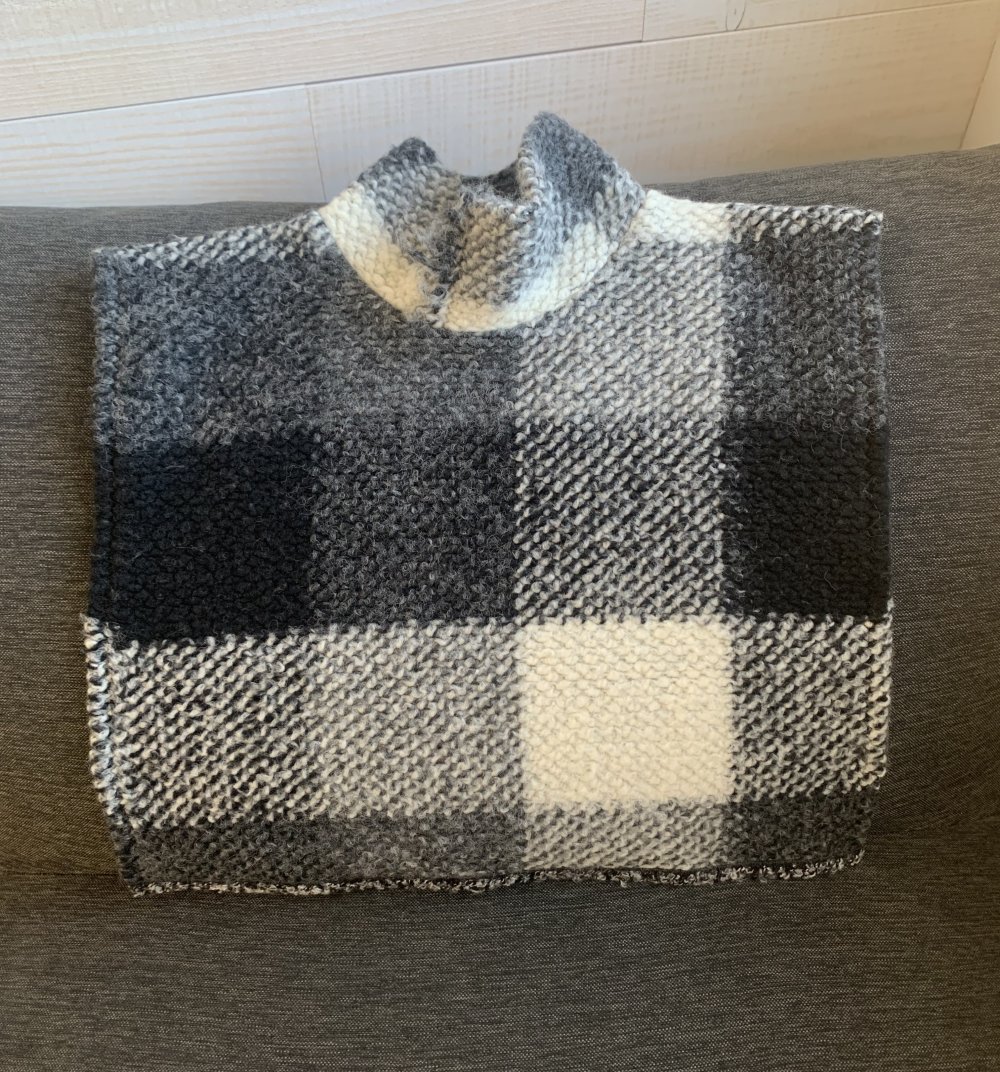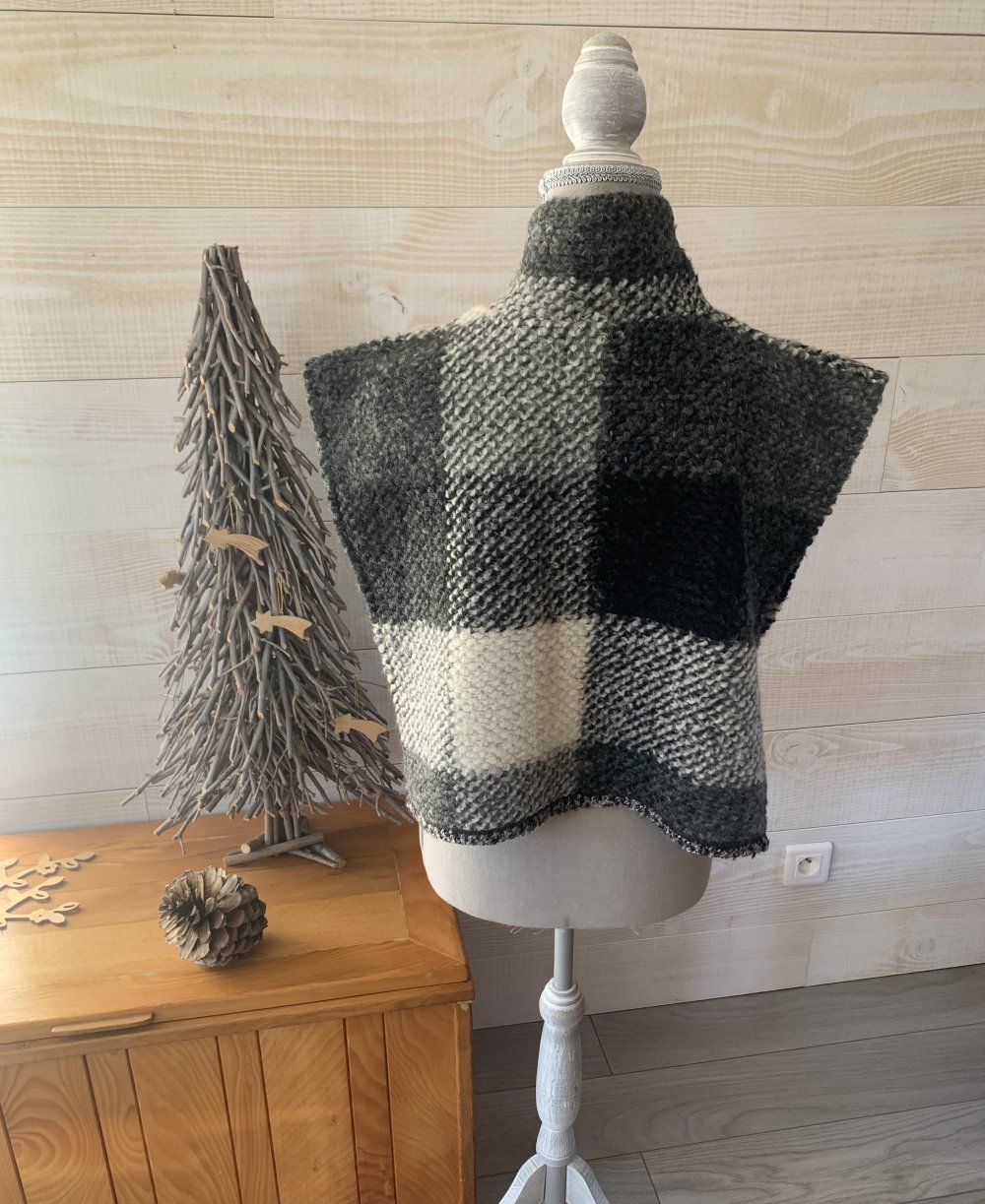 Plastron réalisé dans un lainage maille à carreaux dans les camaïeux noir, gris et écru.