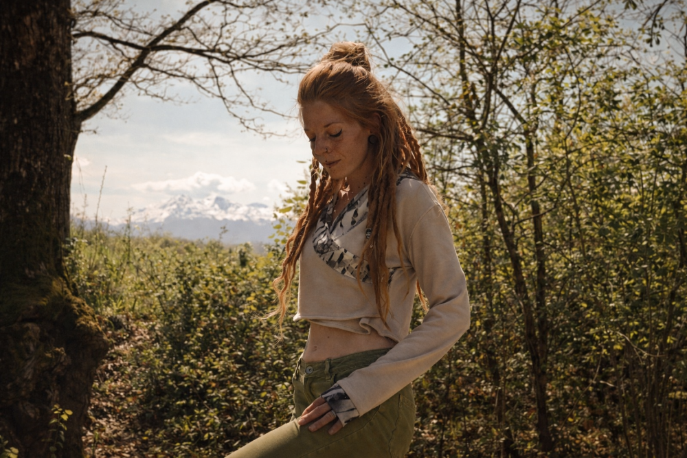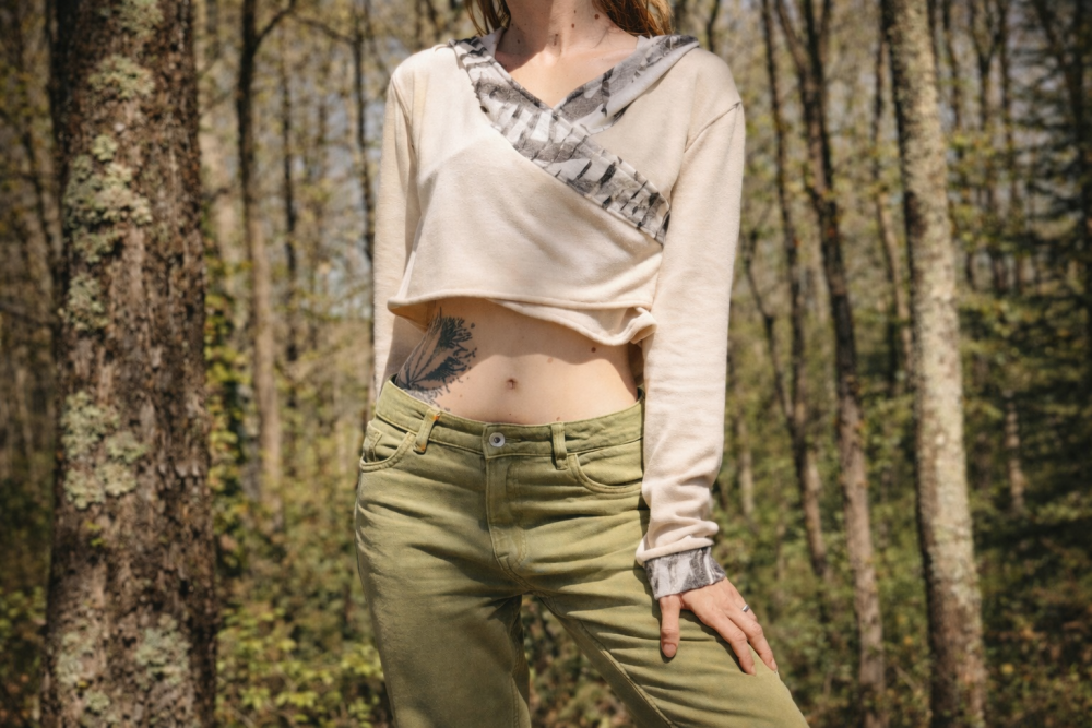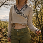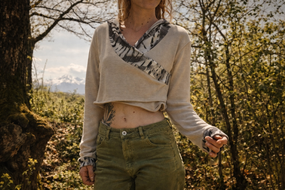 Sa coupe courte et son col croisé mettent subtilement la silhouette en valeur tout en restant confortable.