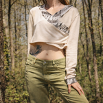 Le détail graphique du col et des poignets apporte une touche originale qui contraste avec la douceur du tissu. Facile à associer, il devient rapidement une pièce incontournable d’un dressing.