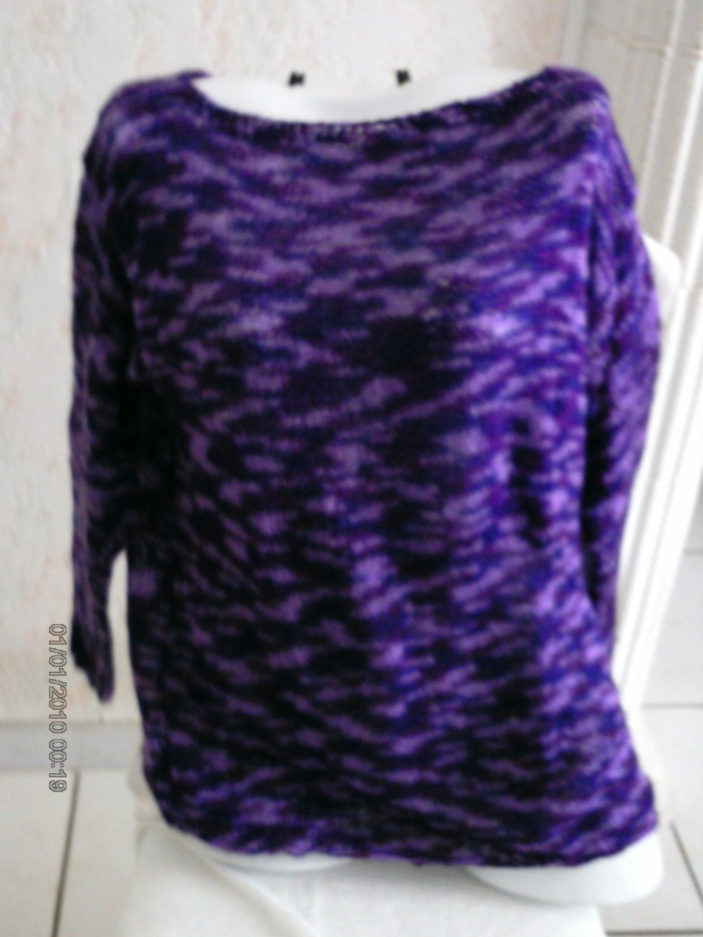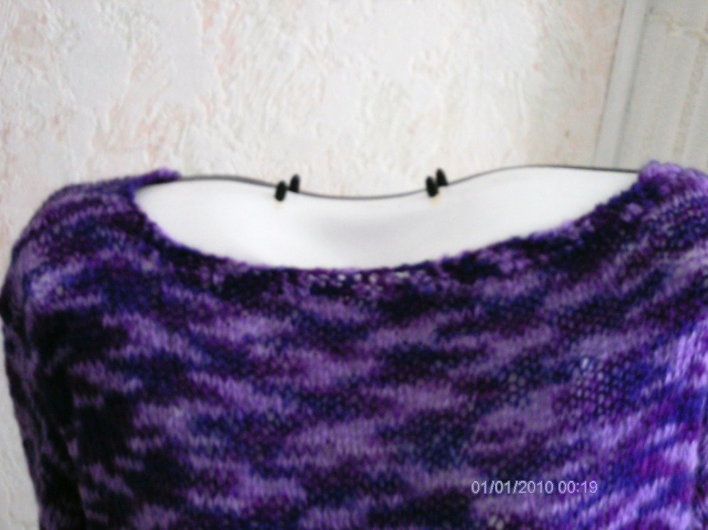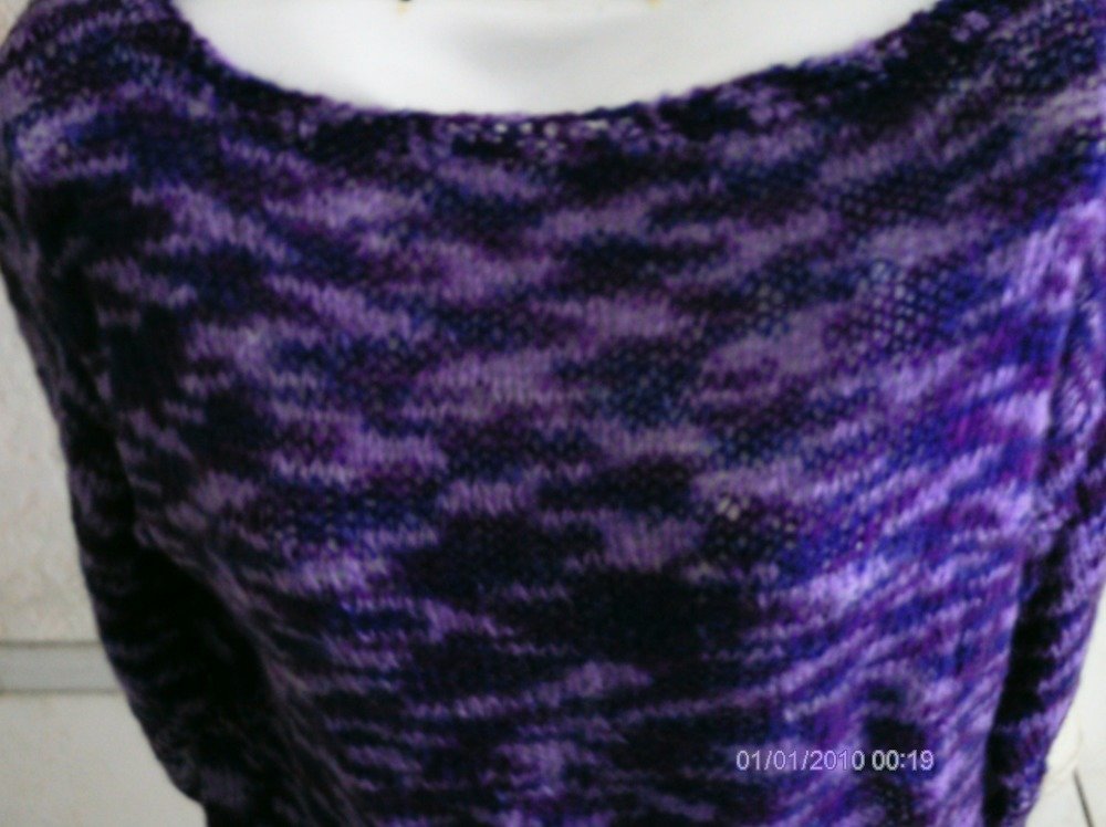 joli pull femme, manches longues, tricoté main, en mohair léger et chaud à la fois, couleur violet dégradé, très original, taille 38/40