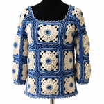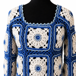 pull femme en granny blanc et bleu pièce ubnique création artisanale