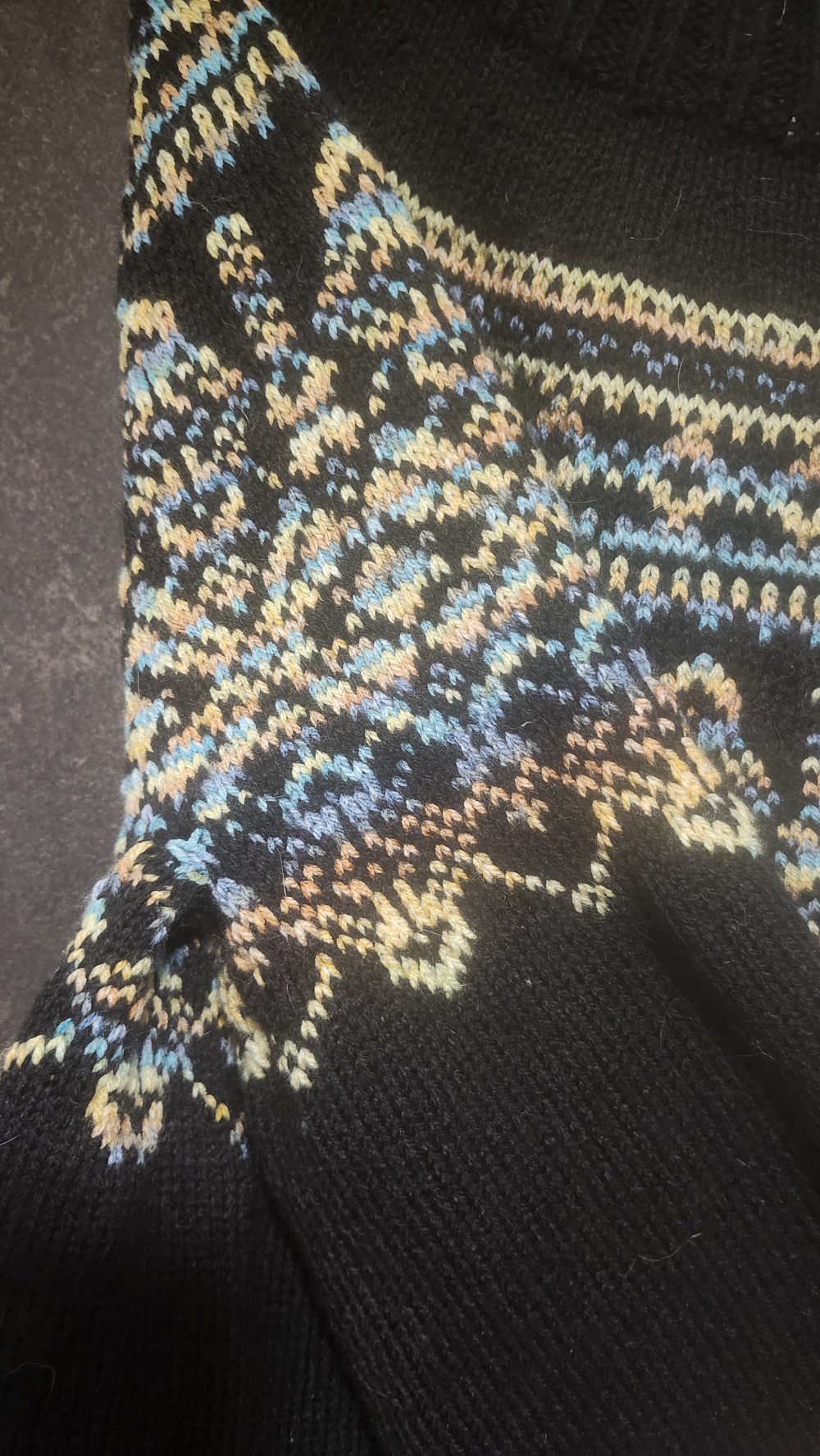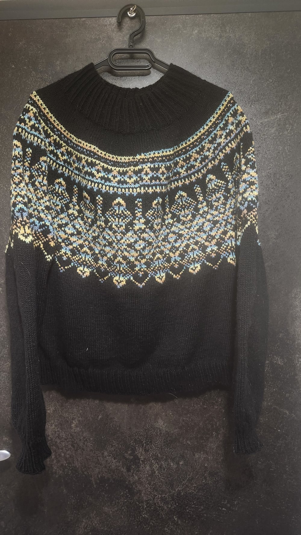 Pull tricoté en laine recyclée (donc impossible d'avoir l'empiécement 2 fois pareil),