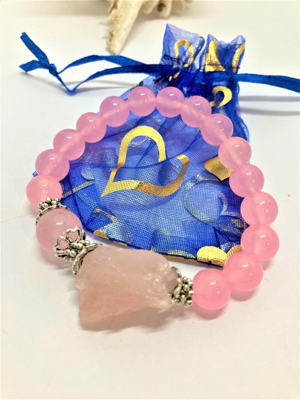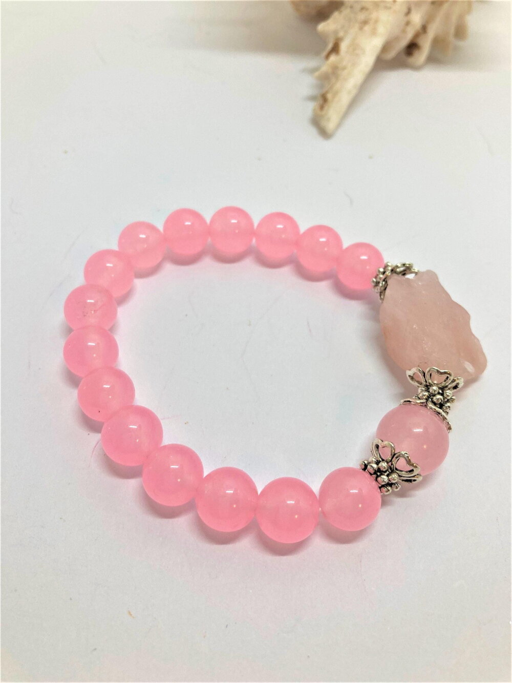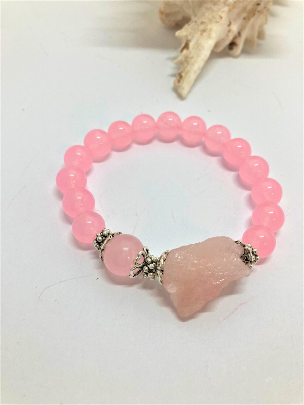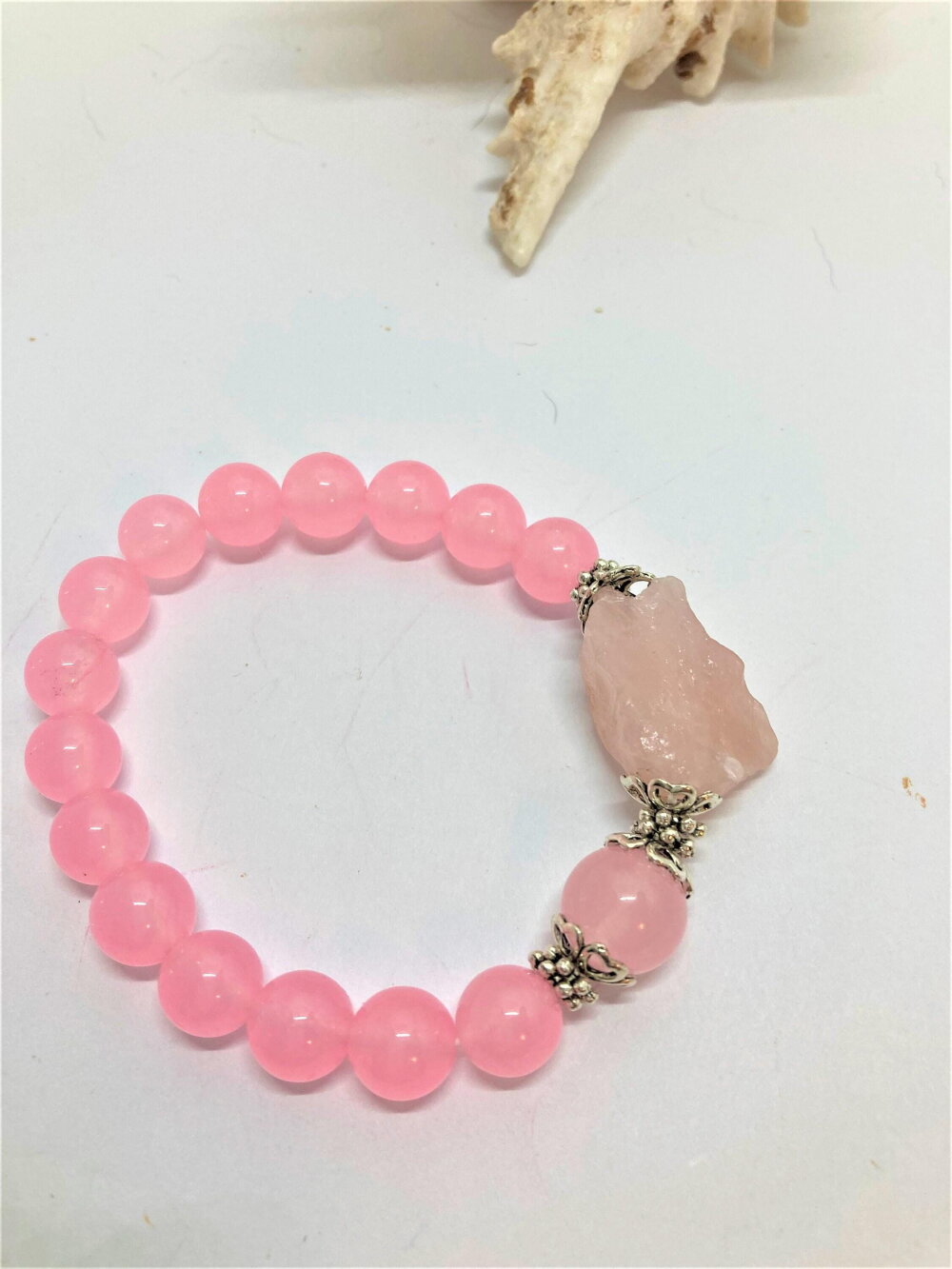 Quartz rose, pour ce joli bracelet très tendance. Bijou femme.