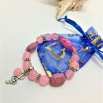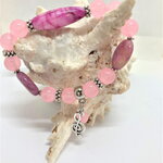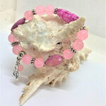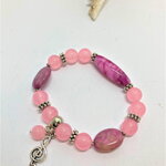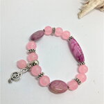Quartz rose et agate marbrée rose bracelet tendance de 16 à 19 cm perles de 8mm avec breloques Bijou femme