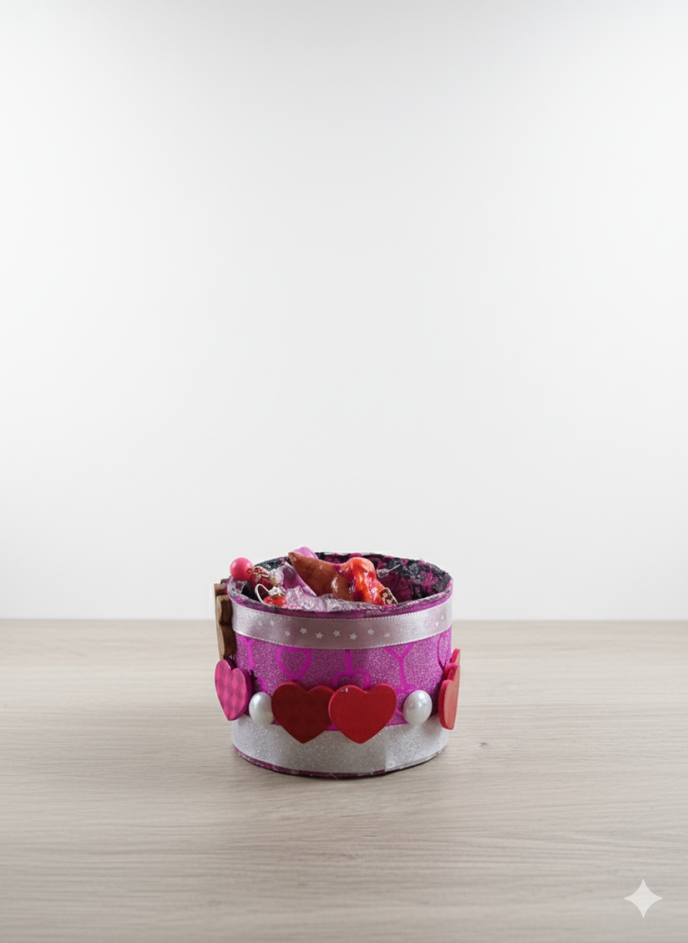 Découvrez notre adorable Boîte à Bijoux "Bijou" Sparkle, une création artisanale unique et pleine de charme, parfaite pour ranger vos trésors. Conçue avec amour à partir d'une base recyclée (boîte ronde), cette pièce a été transformée en un petit écrin scintillant pour vos boucles d'oreilles, bagues, ou petits pendentifs.