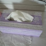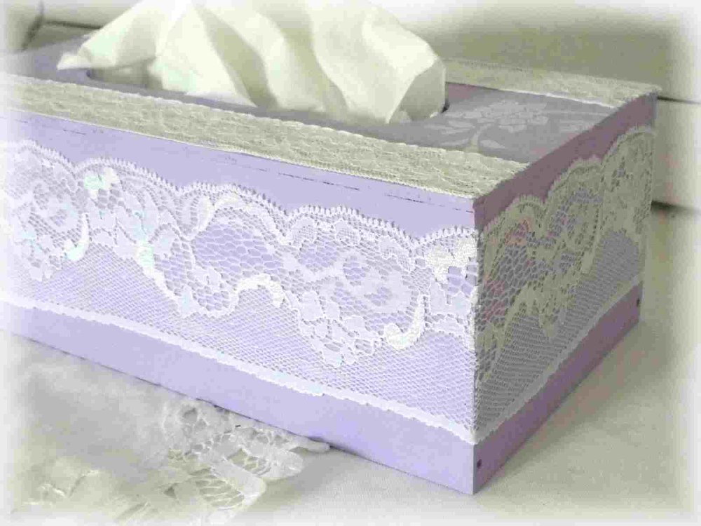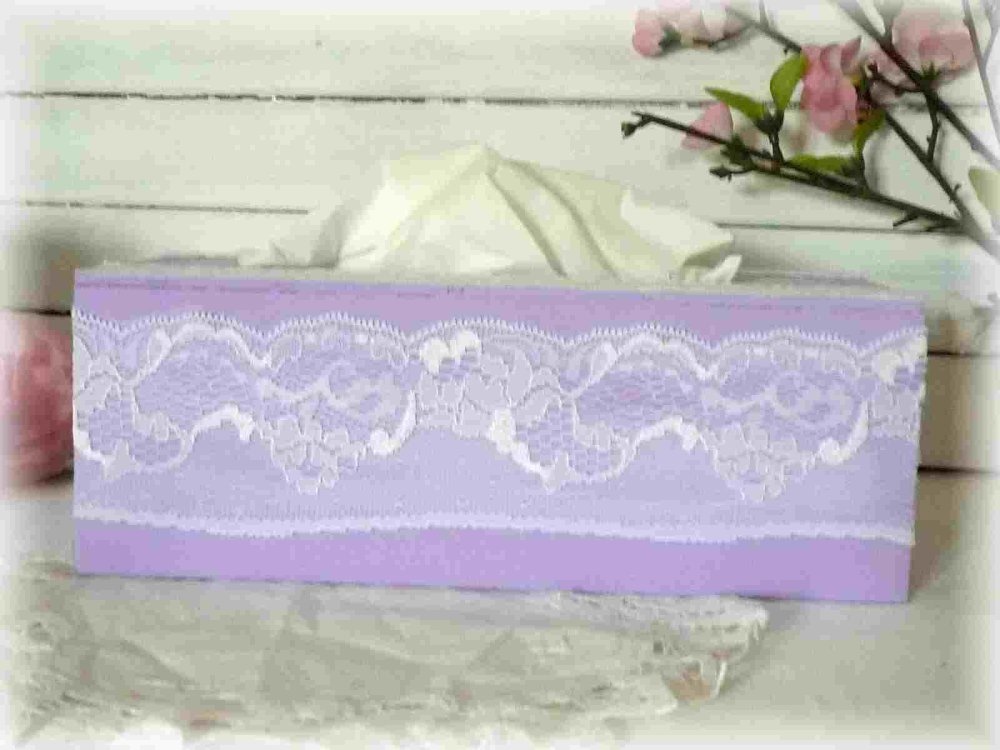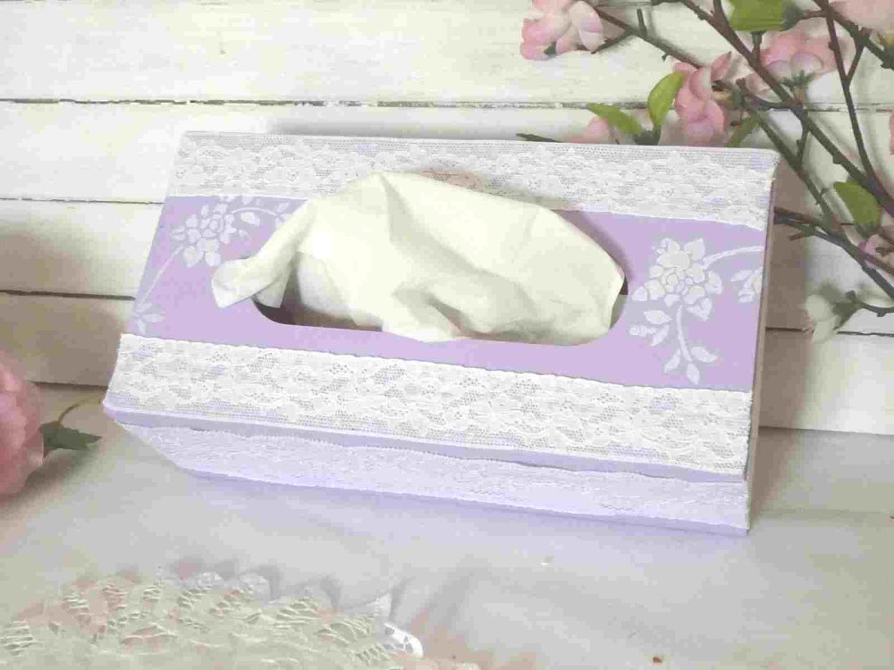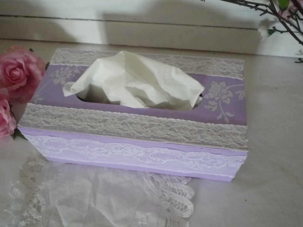 Envie de douceur et couleurs printanières adoptez cette boite à mouchoirs en bois peinte en mauve / violet ( mélange de peinture fait maison) , décorée dans un style tout à fait romantique et shabby
