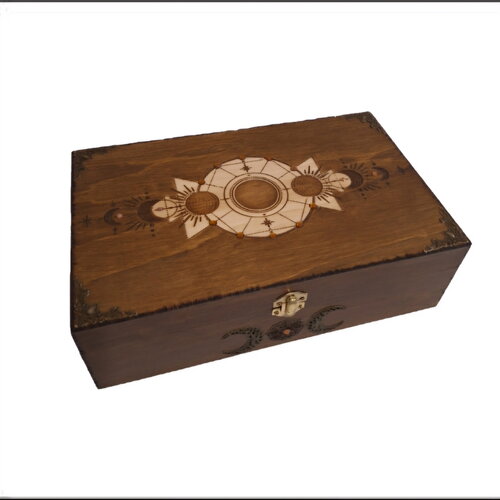 Boîte artisanale en bois massif avec motif triple lune – fait main par une ébéniste