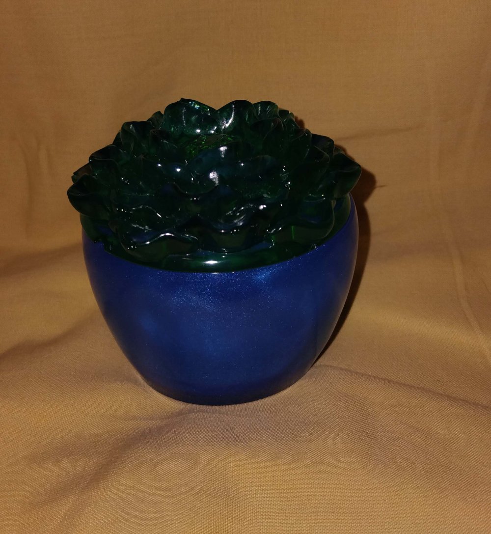 Pot avec un couvercle en forme de fleur de 4,4cm de haut pour 6,9cm de large.