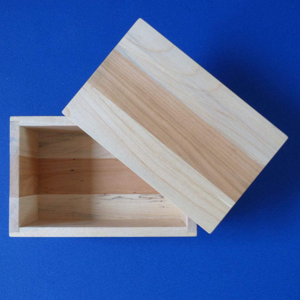 Boîte artisanale en bois massif d’érable et de merisier, au design naturel et contemporain, fabriquée à la main par une ébéniste pour allier élégance, simplicité et qualité artisanale.