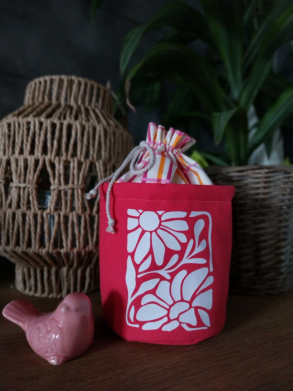 Cette panière pochon en tissu est confectionnée artisanalement avec soin pour allier esthétique et fonctionnalité. Chaque pièce est pensée pour un rangement pratique et durable Grâce à son système de cordon, elle se ferme facilement et protège son contenu tout en restant décorative. Parfaite pour organiser la salle de bain, la chambre d’enfant, le bureau ou le dressing, elle accueille cosmétiques, accessoires, jouets, linge ou petits objets.
