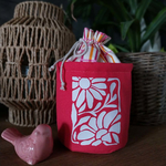 Pochon avec fermeture à lien - fleurs rétro