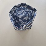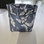 Tissu : 100 % coton, fond bleu décoré de délicates fleurs de Ginkgo